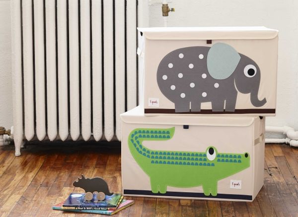 Stor opbevaringskasse i stof med et flot dyremotiv på til opbevaring af legetøj, bøger, tøj eller vasketøj.