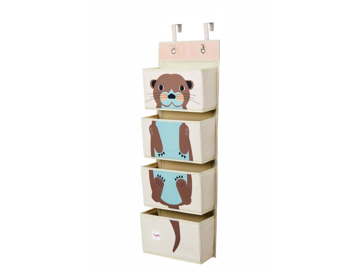 Smart vægophæng med fire store lommer til opbevaring af pusleudstyr ved puslebordet eller legetøj på børneværelset. Et vægophæng der ud over at være funktionel, også pynter og skaber hygge.