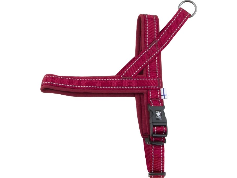 Selen er nem at tage på og behagelig at have på. Den kan tilpasses, så den passer til din hund, idet den er justerbar omkring brystområdet. Der skal altid være lidt plads rundt om halsudskæringen, så din hund kan bevæge sig frit.