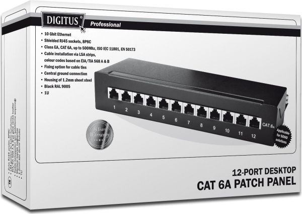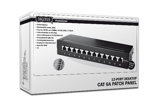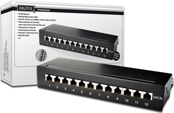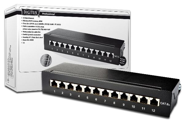 DIGITUS DN-91612SD-EA - Koblingspanel - CAT 6a - RJ-45 X 12 - svart - 1U
