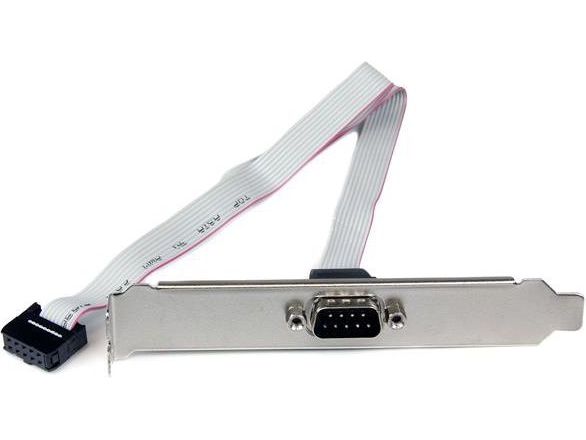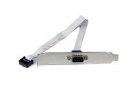 Add an extra serial port to the back of your PC from your motherboard. This 9-pin Serial to 10-pin Header Slot Plate adapter features one DB9 male connector and one IDC10 connector. The adapter is constructed of high quality components and expertly designed to ensure durability and reliability.