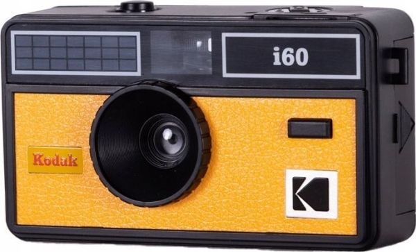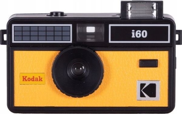 KODAK Film Camera i60 has a modern look based on the vintage design derived from the KODAK INSTAMATIC 100, which was the first model released in the United States in 1963. The i60 has a fixed focus lens, manual film winding and rewinding, built-in pop-up flash and uses 135mm film.Kodak I60. Camera type: Compact film camera, Film type: 135 mm, Film speed setting (ISO): 200 - 800. Focal length range: 31 mm, Lens structure (elements/groups): 1/1. Closest focusing distance: 1 m. Product colour: Black, Yellow. Battery technology: Alkaline, Battery type: AA