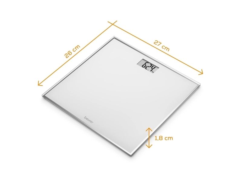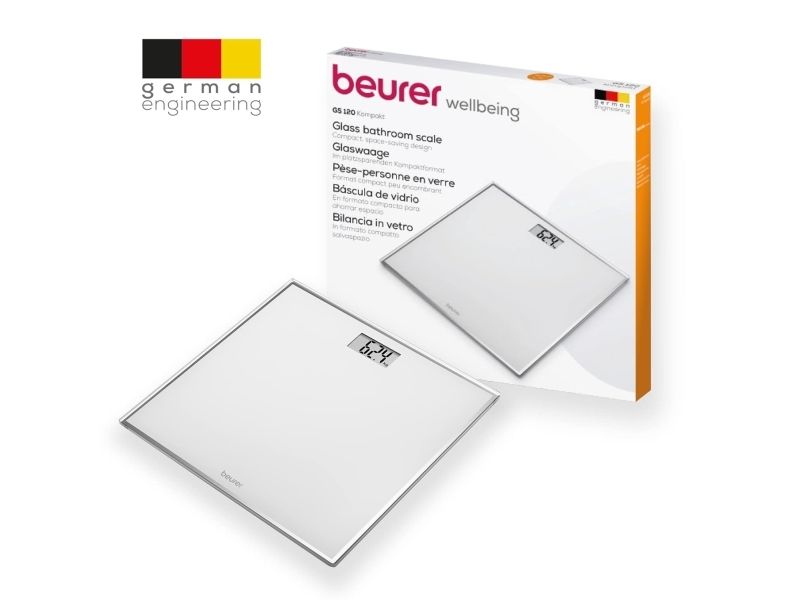 GS 120 kompakt og elegant glasvægt. Måler: 26 x 27 cm. Cifferstørrelse: 22 mm. Maks vægtkapacitet: 150 kg. Farve: Hvid. 5 års garanti.