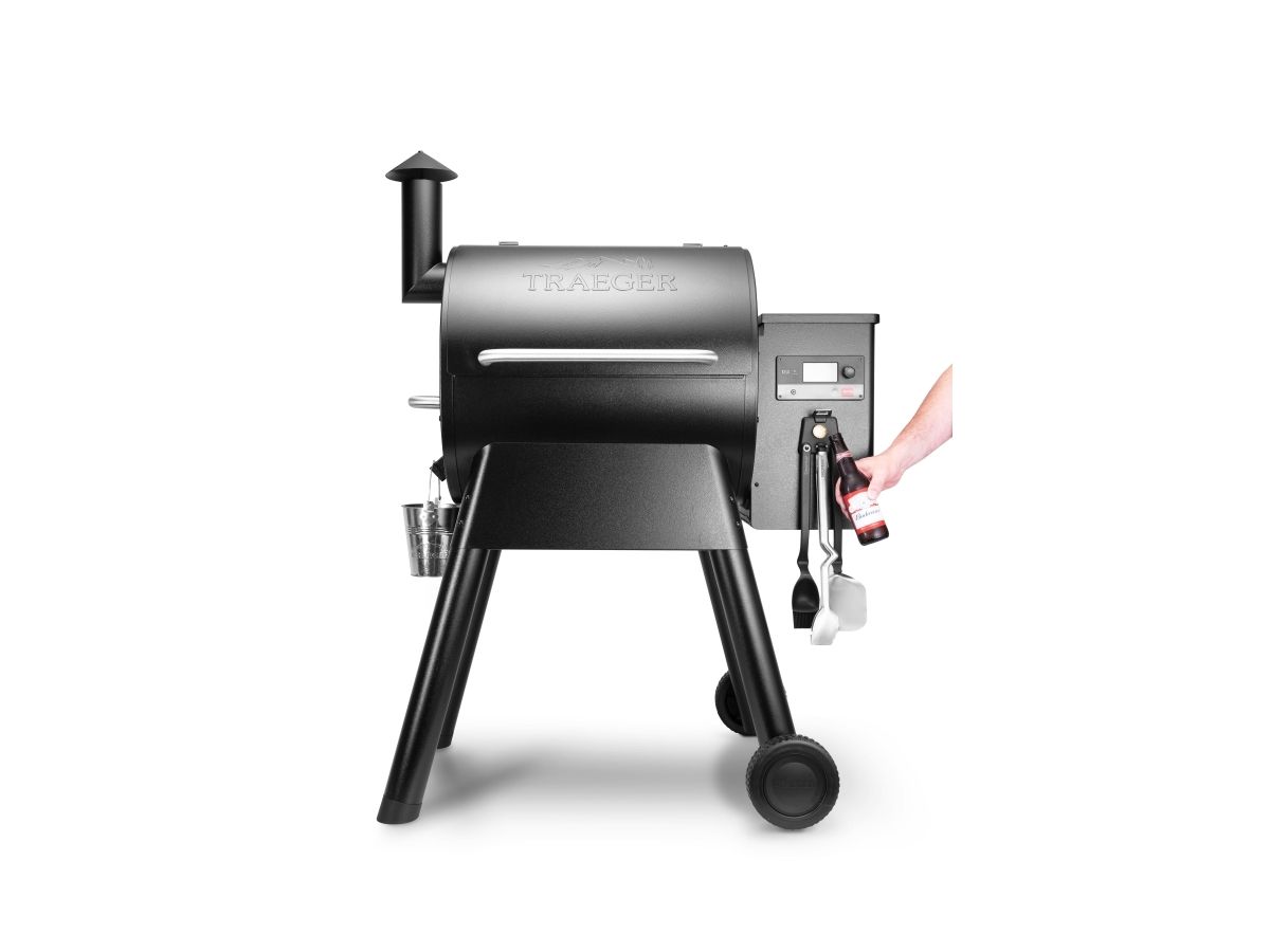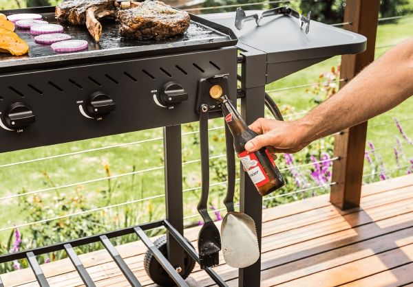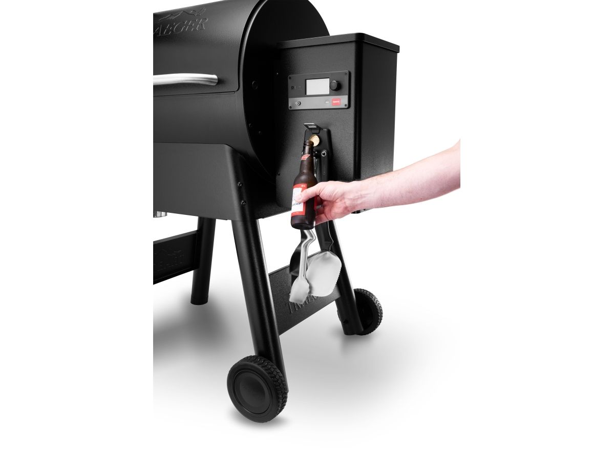 Værktøjsholderen bruger kraftige magneter for at fæstne til din grill for praktisk og pladsbesparende opbevaring af grillværktøj. Den indbyggede flaskeåbner har en ekstra stærk magnet til at fange kapslerne.