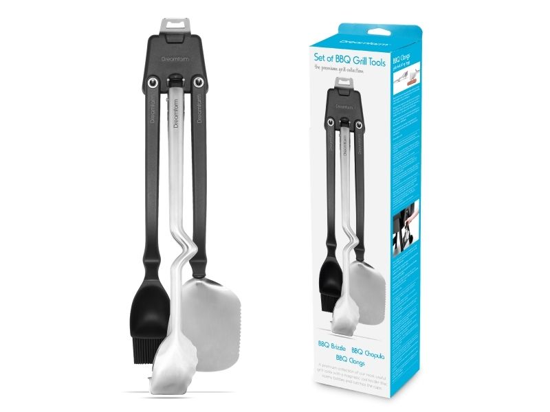 BBQ sæt fra Dreamfarm er en førsteklasses samling af grillværktøj med en magnetisk holder, der kan åbne flasker og opfange kapslerne. Sættet indeholder: