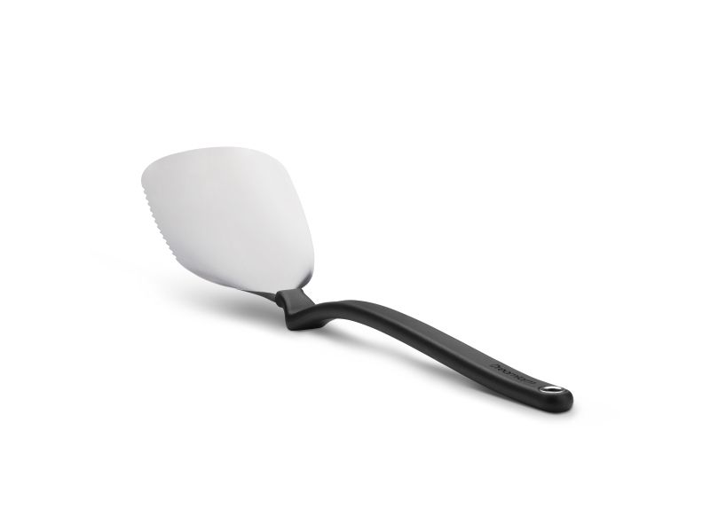 BBQ Chopula er en fleksibel rustfri stålspatel designet med takker til skæring og skraber din grill ren. BBQ Chopulas store fleksible hoved glider let ind under maden for et rent løft eller flip, hvilket gør den perfekt til burgere, fisk og steaks. BBQ Chopulas unikke takkede skær giver dig mulighed for at skære pølser eller bøffer direkte på grillen for at tjekke, om de er færdige. Ekstra langt 15” håndtagsdesign holder din hånd væk fra varmen, mens det holdbare og rustbestandige hoved i rustfrit stål er perfekt til at skrabe grillen ren. BBQ Chopula er designet med et knæk på håndtaget, som gør, at den ikke kommer i kontakt med underlaget. Produceret i rustfrit stål og nylon. BPA-fri. Tåler opvaskemaskine.