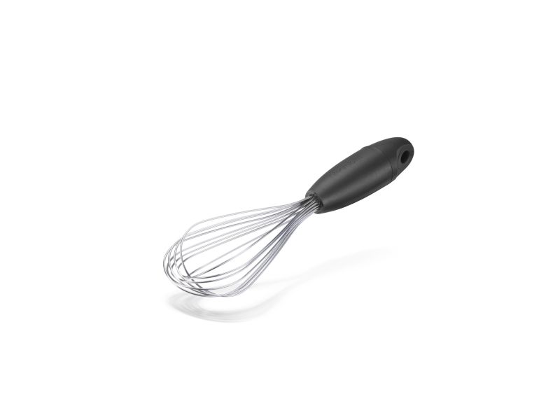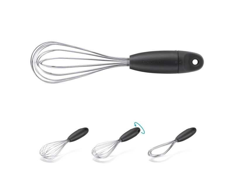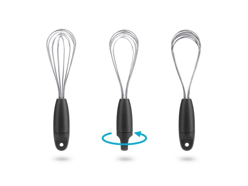 Mini Flisk fra Dreamfarm er et piskeris i miniudgave, der kan drejes og foldes sammen, så det fylder minimalt og kan opbevares i skuffen uden at det bliver viklet sammen med andre køkkenredskaber. For at rengøre skal du blot vride Mini Flisk til et fladt piskeris, skrabe overskydende ingredienser af og komme i opvaskemaskinen. Ingen adskillelse og udført på ingen tid! Mini Flisk er den perfekte størrelse til mindre opgaver. Den passer nemt i et krus eller glas til at blande drikkevarer og i de små hænder på minihjælperen! 3 folde muligheder - et ballonpiskeris til piskning, et saucepiskeris til væsker og et fladt piskeris til ex. røræg.