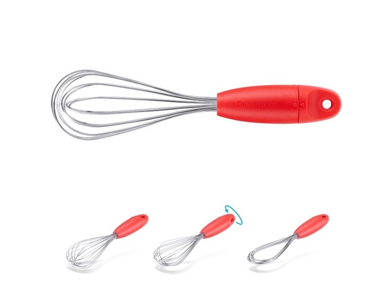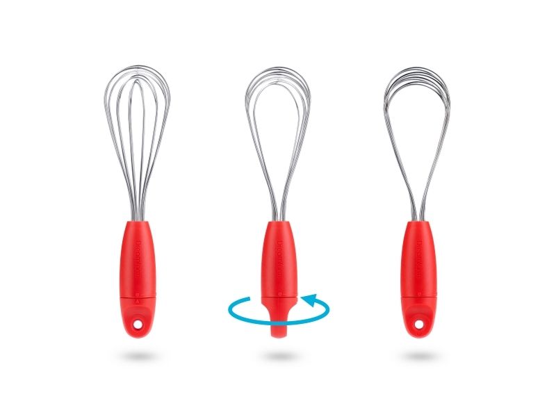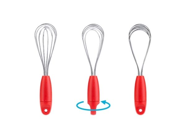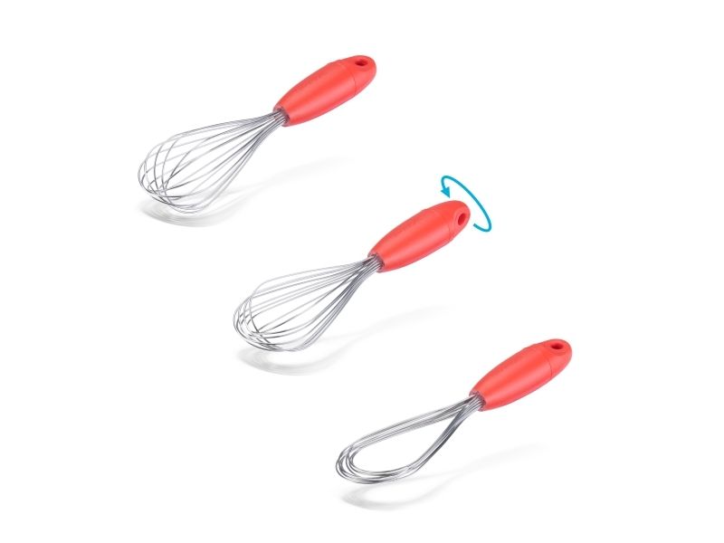 Mini Flisk fra Dreamfarm er et piskeris i miniudgave, der kan drejes og foldes sammen, så det fylder minimalt og kan opbevares i skuffen uden at det bliver viklet sammen med andre køkkenredskaber. For at rengøre skal du blot vride Mini Flisk til et fladt piskeris, skrabe overskydende ingredienser af og komme i opvaskemaskinen. Ingen adskillelse og udført på ingen tid! Mini Flisk er den perfekte størrelse til mindre opgaver. Den passer nemt i et krus eller glas til at blande drikkevarer og i de små hænder på minihjælperen! 3 folde muligheder - et ballonpiskeris til piskning, et saucepiskeris til væsker og et fladt piskeris til ex. røræg.