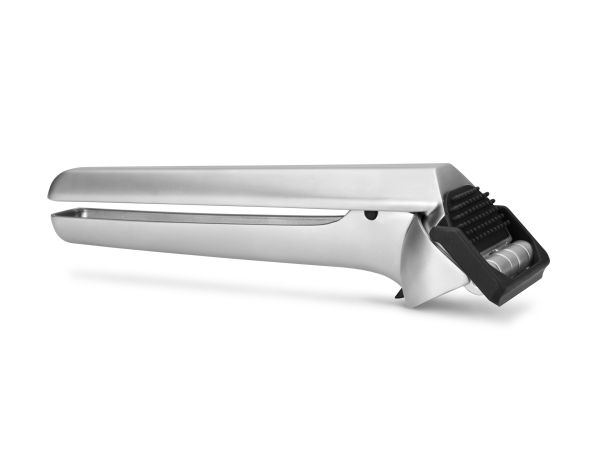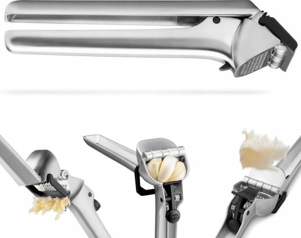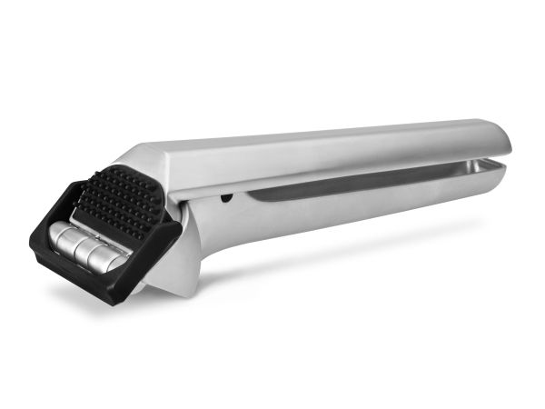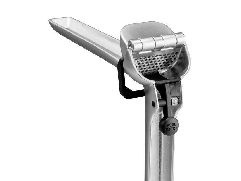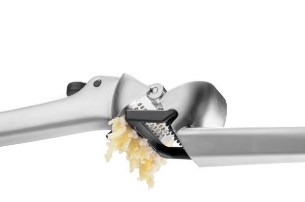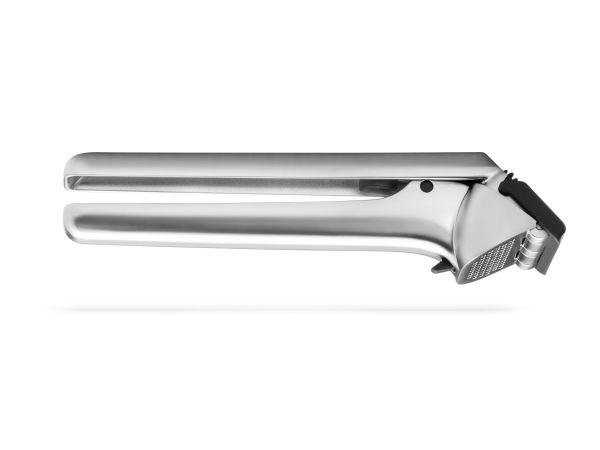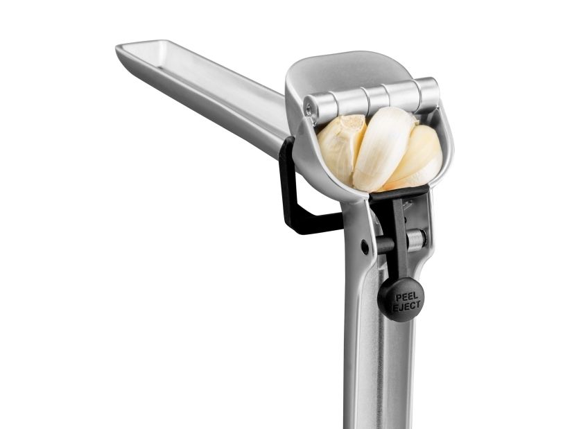 Garject presser uskrællede hvidløg, skraber sig selv rent og skubber endda skrællen ud. Alt hvidløget ender i dit måltid, dine hænder lugter ikke af hvidløg, og din hvidløgspresser renser praktisk talt sig selv i processen. Garject er en kraftfuld hvidløgspresser. Den presser nemt og fuldstændigt flere fed hvidløg på én gang, uden at det er nødvendigt at skrælle dem først. Tryk blot på udløserknappen for at skyde hvidløgsskrællen ud. Skyl din Garject under vand, og det er ikke det eneste, der er helt rent - det er dine hænder også. Materiale er forkromet zink og nylon. BPA-fri. Tåler opvaskemaskine.