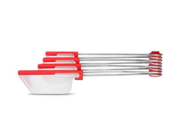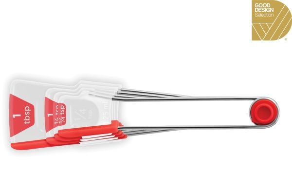 Sættet er med 4 måleskeer, der klikkes sammen til opbevaring, viftes ud for let valg og nemt kan klikkes fra hinanden, så du kun skal vaske de brugte skeer. Levoon-håndtagene presses sammen for at skrabe overskydende ingredienser af, hvilket giver et jævnt og præcist mål. Store letlæselige mål er indgraveret, så de aldrig smitter af med tiden eller forsvinder i opvaskemaskinen. Målene er vist i spiseske- og teske-portioner samt millilitermål. Materiale er polypropylen og rustfrit stål. BPA-fri. Tåler opvaskemaskine.