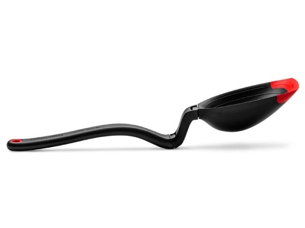 Spadle fra Dreamfarm er en utrolig alsidig grydeske der kan drejes, så den også fungerer som en suppeske. Spadle har alle funktioner; fra en flad gummiskraberspids til at skrabe panden eller skålen ren, et dybt øsehoved, flere nyttige måleenheder (100ml, ¼ kop, teske og spiseske mål) og et håndtag, der fungerer som en indbygget skestøtte, når du lægger den på bordet. En simpel twist af Spadles håndtag forvandler den til en smart øse, der er perfekt til servering af supper eller gryderetter. Spadles håndtag drejes, og så er den en alsidig ske - perfekt til servering! Den fleksible silikone skrabespids er sikker at bruge på non-stick køkkengrej og er varmebestandig til 260°C. Spadle er designet med et knæk på håndtaget, som gør, at den ikke kommer i kontakt med underlaget. Materiale er nylon og silikone. Tåler opvaskemaskine. BPA-fri.