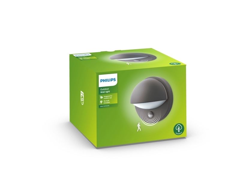Philips myGarden June-vegglampe, 12 W, E27, P45, ingen pære, Vegglys, Sort, Metall, IP44, Fasade, Hage, Terrasse, II