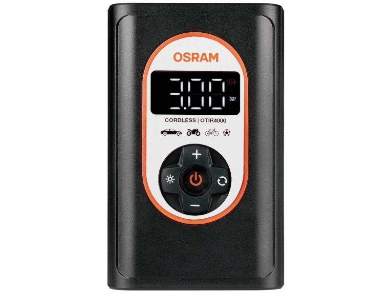 OSRAM TYREinflate 4000 er en ledningsfri og genopladelig dækpumpe med Li-Ion batteri, hvilket gør den til en ideel ledsager til camping og roadtrips. Den kan bruges både til bilen, cyklen, motorcyklen, bolden eller andet, der har brug for trykluft. OTIR 4000 digitale dækpumpe kan pumpe et dæk op på kun 3,5 minutter .