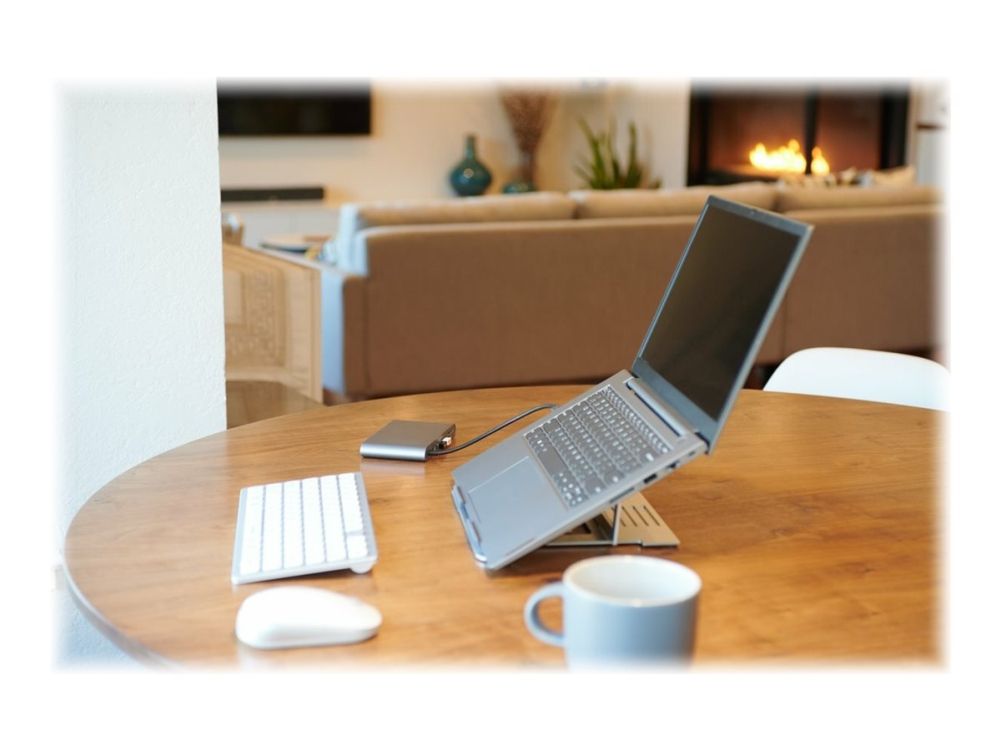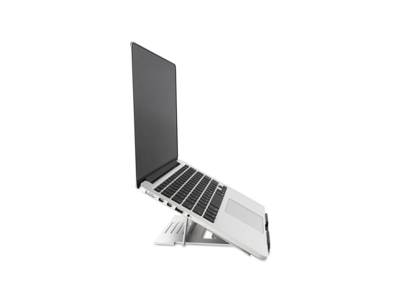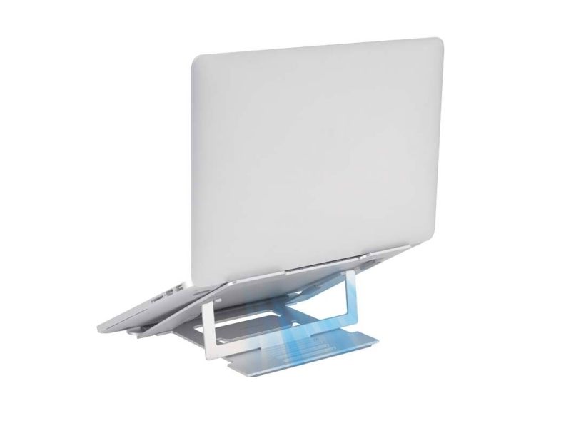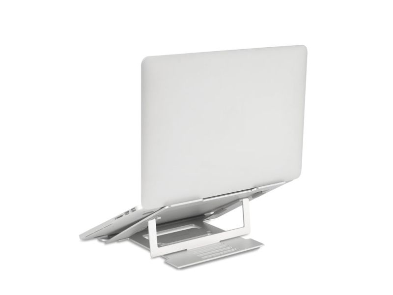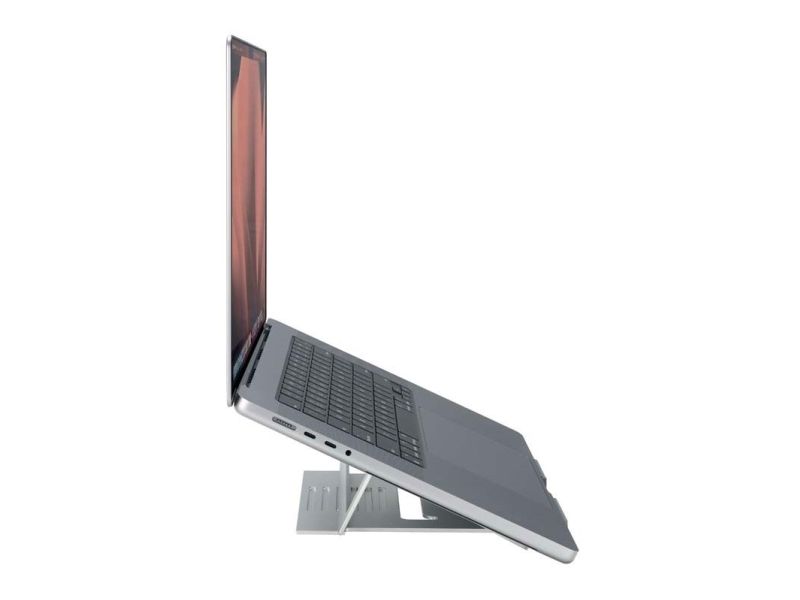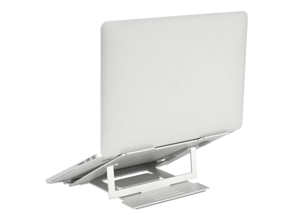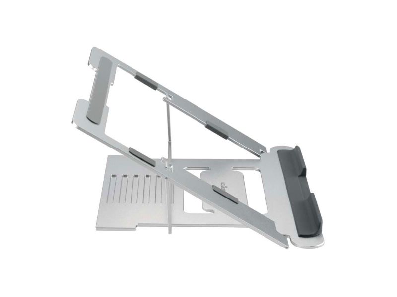 Hybrid working has expanded the need for users to be comfortable and productive - not only in the office, but at home or wherever they are working. The demand for environmental sustainability has also expanded. Easily portable and constructed of durable, lightweight, sustainable aluminum, the Easy Riser aluminum laptop riser supports virtually any size laptop up to 16" and includes 6 levels of height/angle adjustment for optimal viewing. Open ventilation enhances air circulation and laptop cooling. With light weight, the Easy Riser folds flat for easy portability and travel convenience.