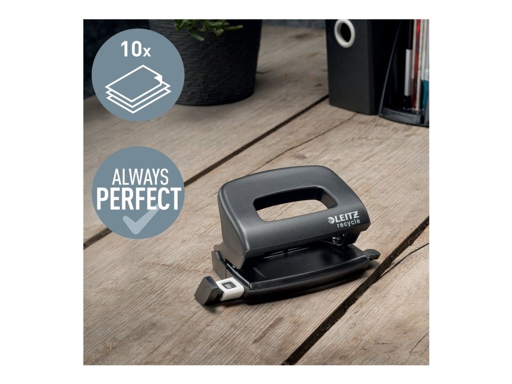 Leitz NeXXt Recycle - Hullstanser - mini - 10 ark / 1 mm - plast, metall - svart