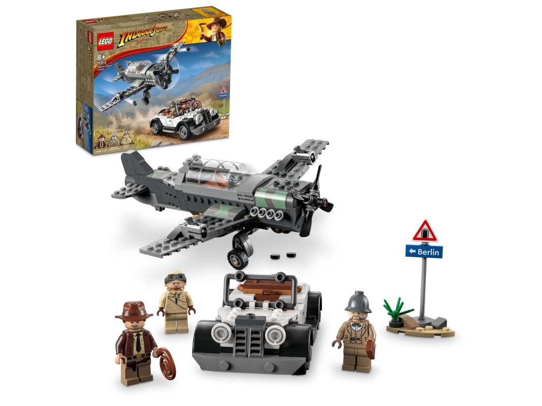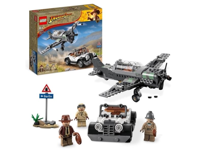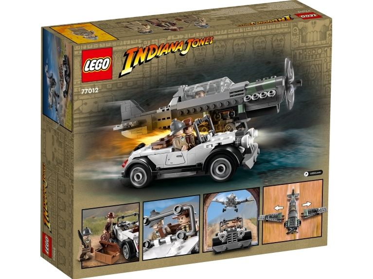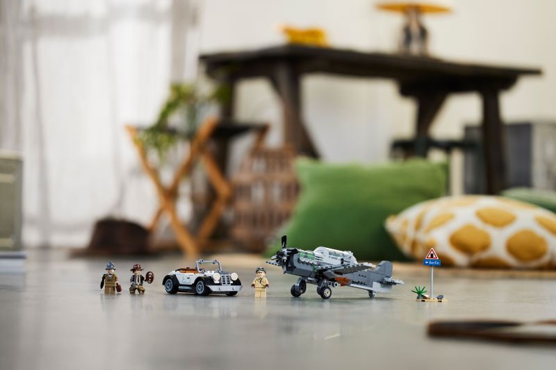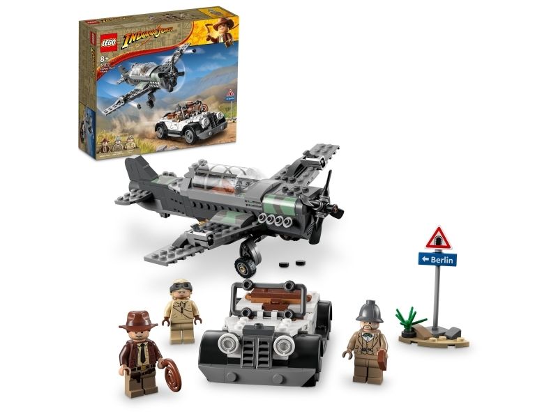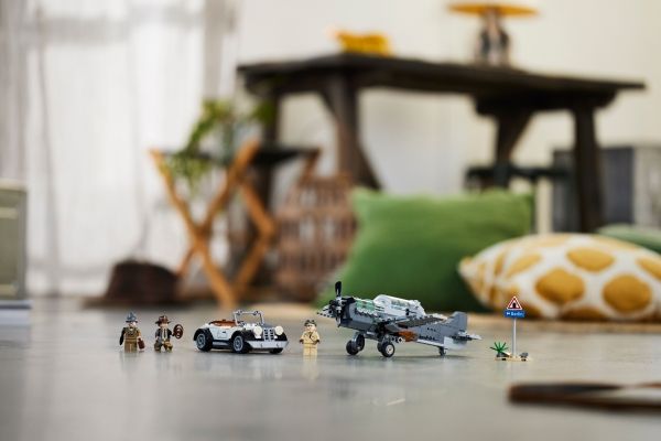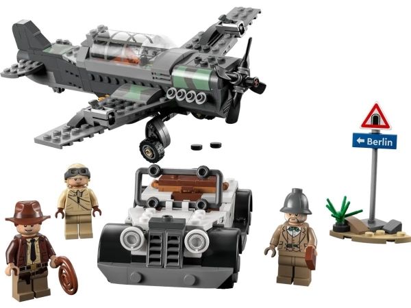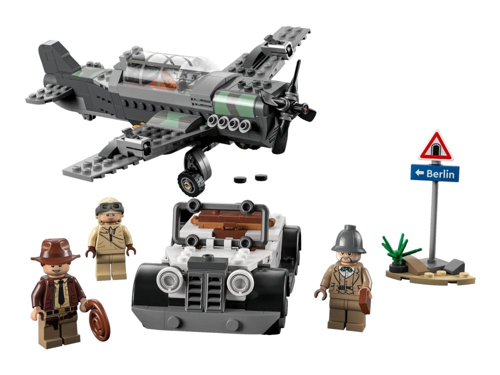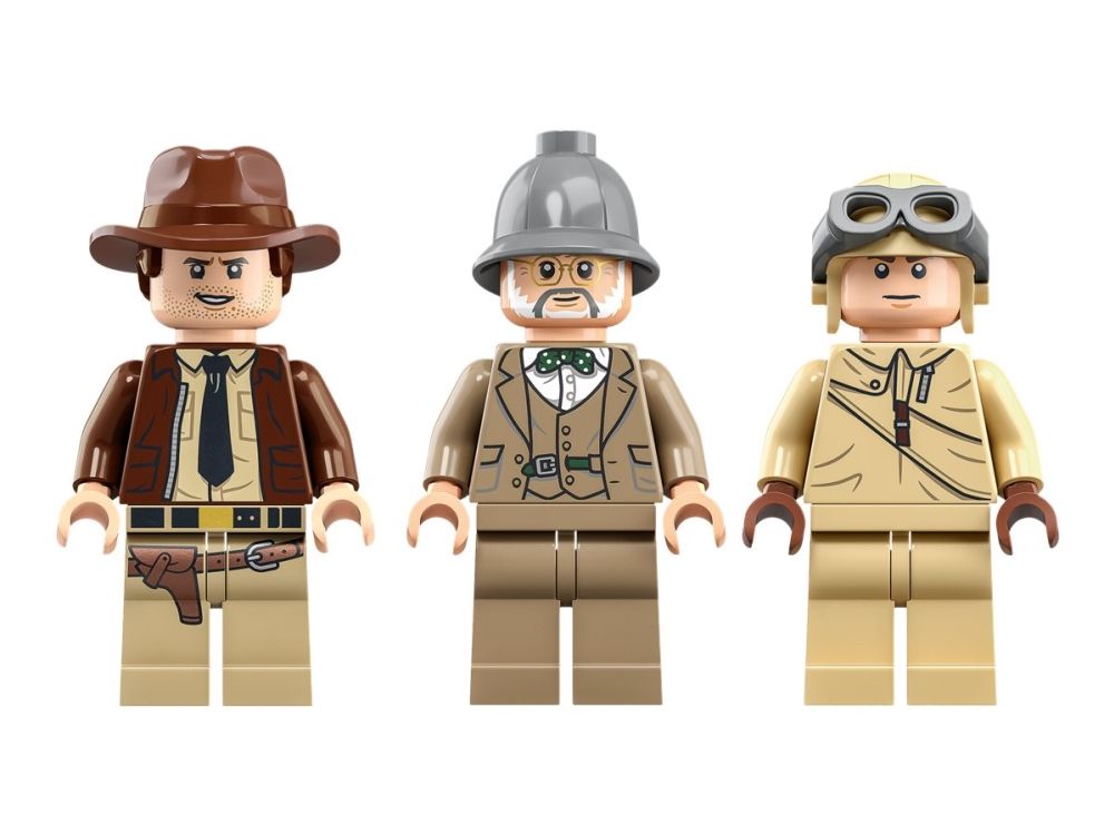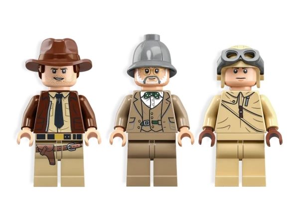 Byggesettet inkluderer minifigurer av Indiana Jones med sin berømte pisk, Indianas far, professor Henry Jones Sr.™ som holder en dagbok, og en pilot, som barnkan bruke for å gjenskape den ikoniske scenen fra filmen Indiana Jones og det siste korstog.