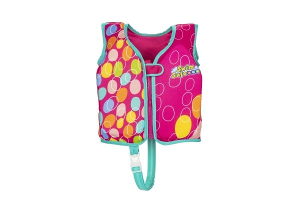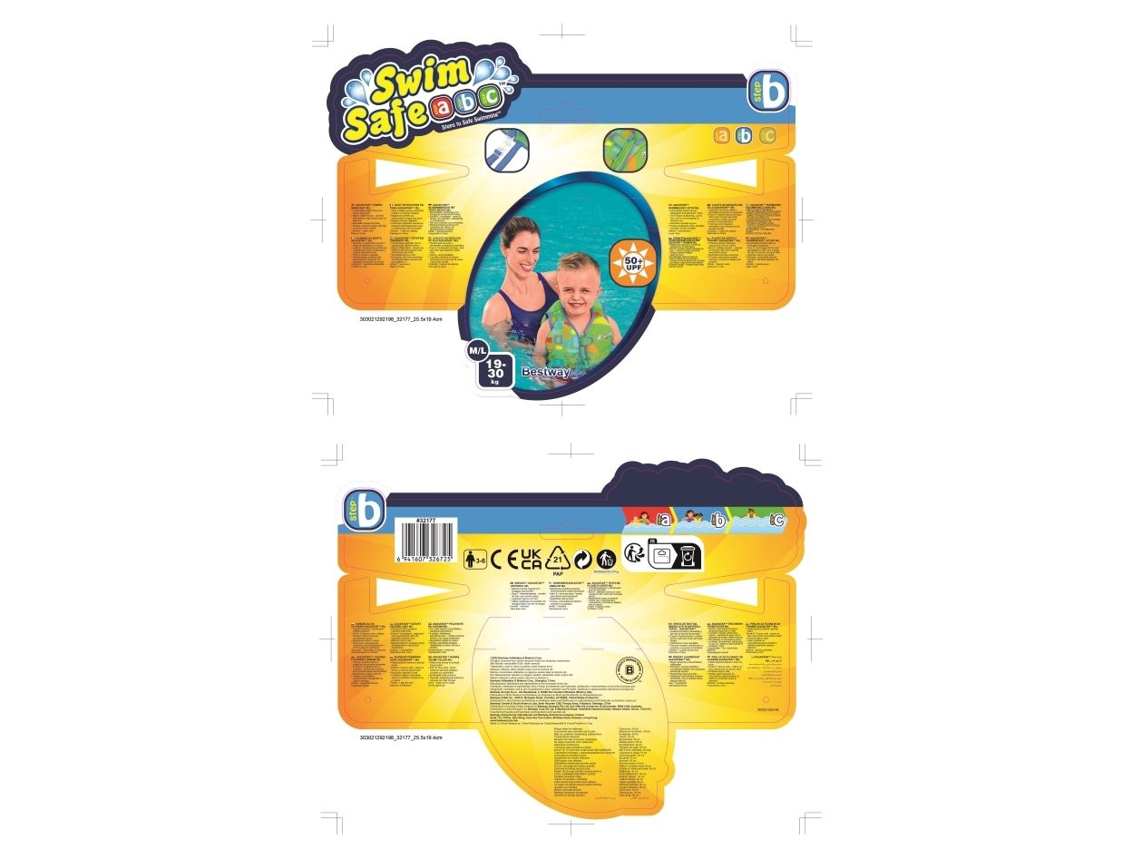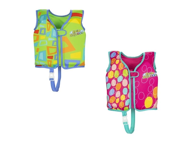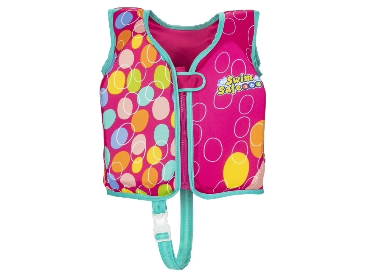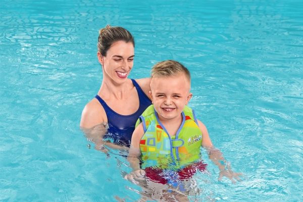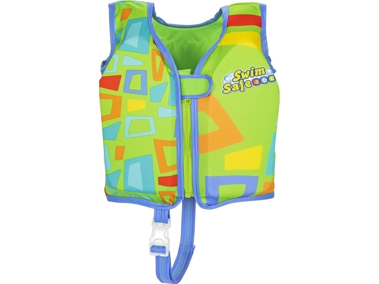 Få dit barn i gang med at svømme godt, og gør det sikkert og behageligt med Swim Safe ABC? AquaStar? Fabric Kids Swim Vest! Denne svømmevest i strikket stof hjælper dit barn i alderen 3-6 år med at mestre det grundlæggende i svømning og poolsikkerhed som en del af Bestway® Swim Safe trin for trin-programmet. Med det bløde stof og de indbyggede skumpuder kan dit barn nyde både komfort og opdrift, når det lærer at svømme med denne Step B-artikel. Desuden har den to justerbare spænder med hurtig udløsning for sikkerhedens skyld og en holdbar lynlås med automatisk låsning og flapbeskyttelse, når den er lukket. Stoffet er UPF 50+, hvilket hjælper med at blokere skadelige UV-stråler og forhindrer falmning. Det perfekte næste skridt på dit barns svømmerejse, hvor de lærer at rotere armene og øve sig i at padle med hænderne, når de går videre til trin C. Bestway Swim Safe ABC trin for trin-programmet begynder med trin A-floats, som er til babyer og småbørn, der har brug for maksimal støtte. Trin B-badeveste er til småbørn, der begynder at få selvtillid, men endnu ikke kan svømme selv, og trin C-armbånd er til børn, der er begyndt at lære de grundlæggende ting ved svømning. At lære at svømme har aldrig været så sikkert og sjovt!