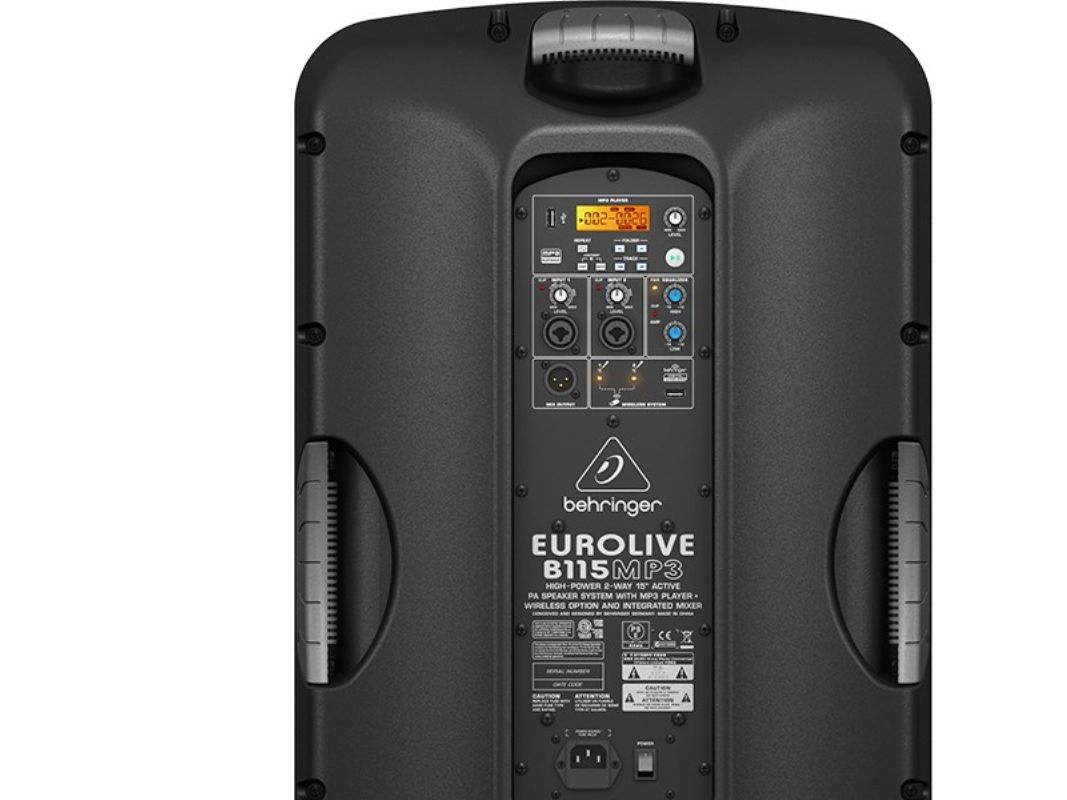 Custom-Engineered Transducers Powerful, high-efficiency Class-D amplifiers and Switch Mode Power Supply technology coupled with state-of-the-art DSP functionality sure sounds impressive— but what about the part of the system you actually hear? Our LF (Low Frequency) and HF (High Frequency) transducers are designed specifically for each application it’s what sets us apart from the competition. When you buy a BEHRINGER active loudspeaker, you can rest assured that the transducers inside have been engineered to perform flawlessly in conjunction with every other element for truly professional results. The B115MP3 cranks out massive quantities of low end, with articulate, detailed mids and crystal-clear highs.Behringer EUROLIVE B115MP3. Speaker type: 2-way, Speaker placement: Floor. Impedance: 14000 Ω, Sensitivity: -36 dB, Frequency range: 20 - 20000 Hz. Product colour: Black. AC input voltage: 120 V, AC input frequency: 60 Hz. Width: 427 mm, Depth: 313 mm, Height: 713 mm