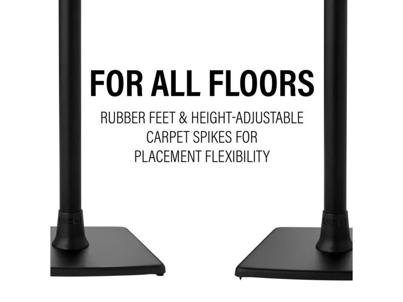 The Sanus WSSE11 speaker stand combines functionality with aesthetic appeal. Designed for floor-standing placement, this stand is suitable for any speaker setup, ensuring your audio system looks as good as it sounds. Its steel construction provides durability and stability, while its adjustable feet and included rubber pads adapt to any surface, ensuring your speakers remain securely in place. The integrated cable management system keeps wires neatly organized, contributing to a clean look. Capable of supporting speakers up to 2.2 kg, the Sanus WSSE11 can accommodate a wide range of audio equipment. Assembly is straightforward with all necessary components included, allowing for an easy setup. Enhance your audio experience with the Sanus WSSE11, where design meets functionality.