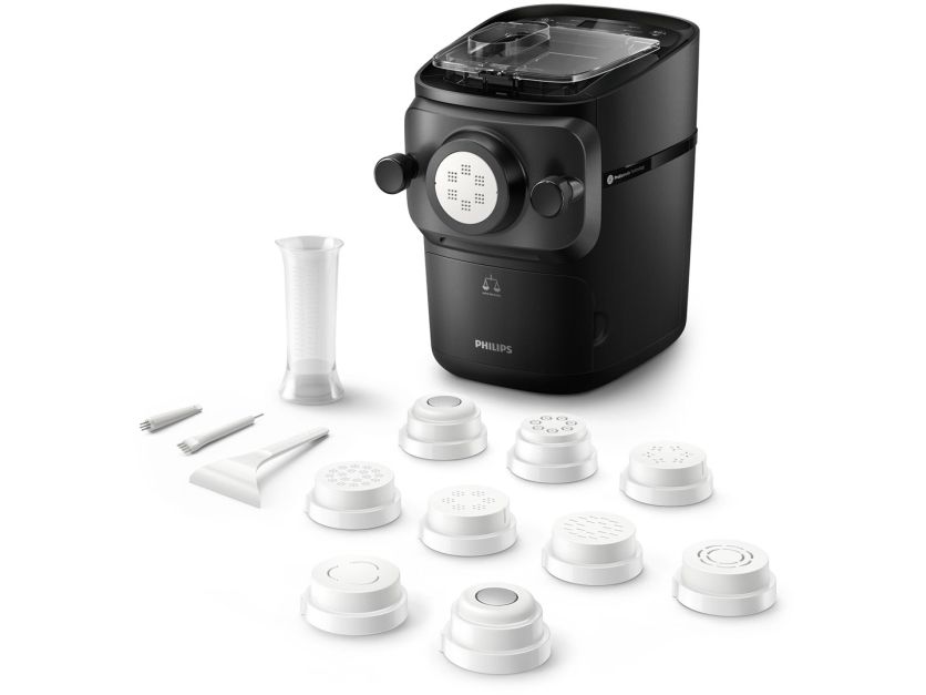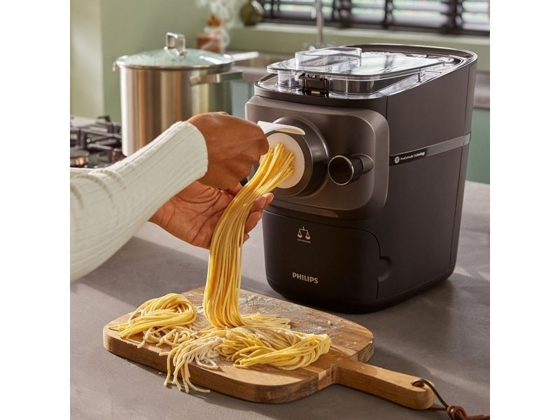 Discover the joy of homemade pasta with the Philips 7000 Series HR2665 pasta maker. This kitchen appliance combines convenience with versatility, allowing you to create a wide range of pasta dishes with ease. Its dishwasher-safe removable parts make cleanup a breeze, while the built-in scales and LED display ensure precise ingredient measurement and easy operation. Whether you're in the mood for spaghetti, fettuccine, lasagne, or more, the included nine pasta shaping discs have you covered. Designed to serve up to 8 persons and crafted with a durable metal and plastic body, this pasta maker is a valuable addition to any home chef's kitchen.