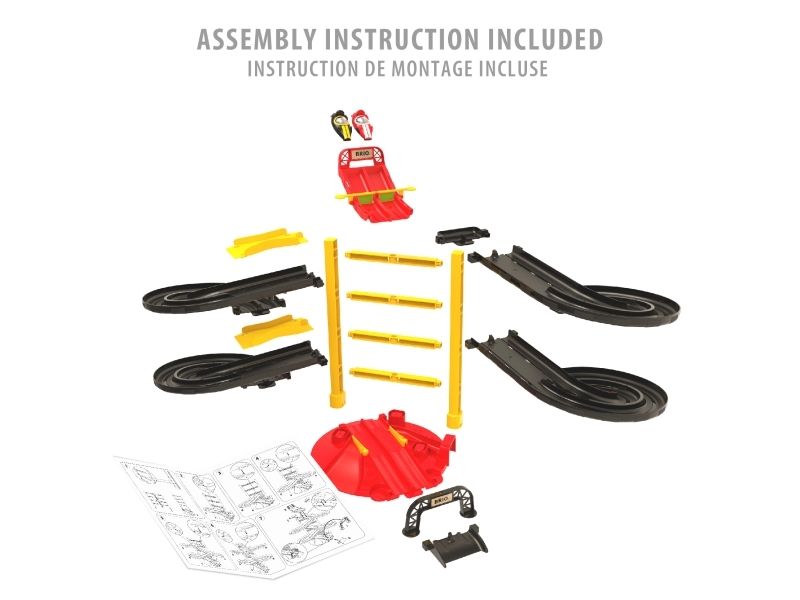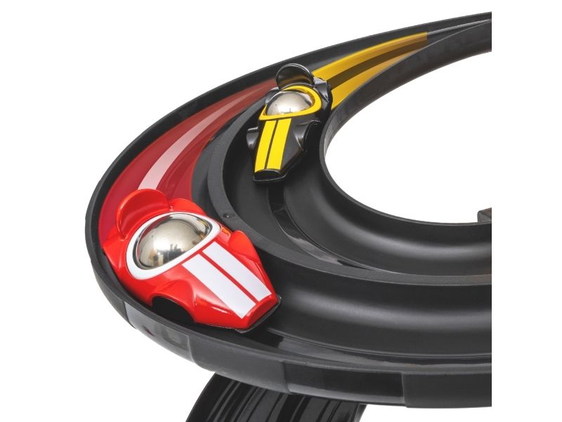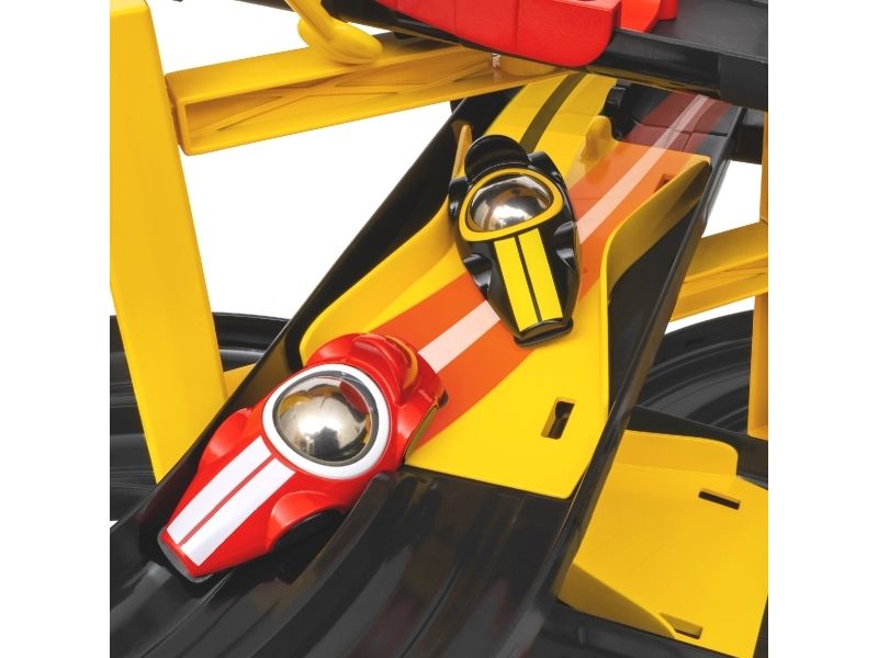 La racerløpet starte med 30550 Racerbiltårn. Hev startflagget øverst i tårnet og la tyngdekraften gi fart til to klassisk uformede racerlekebiler ned gjennom svingene. Velg om det er den som først krysser mållinjen eller den som kjører lengst som vinner. Pass på at de ikke krasjer på de kryssende veiene mens de fyker avgårde. Så er det bare å sett i gang et nytt løp. Delene kan bygges om i forskjellige utforminger for fleksibel lek.