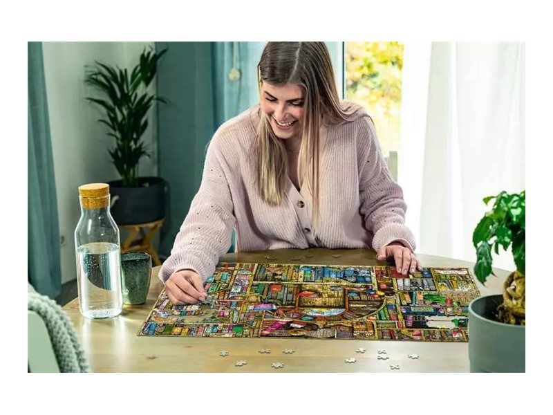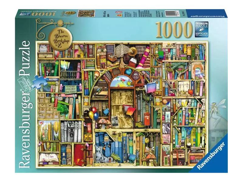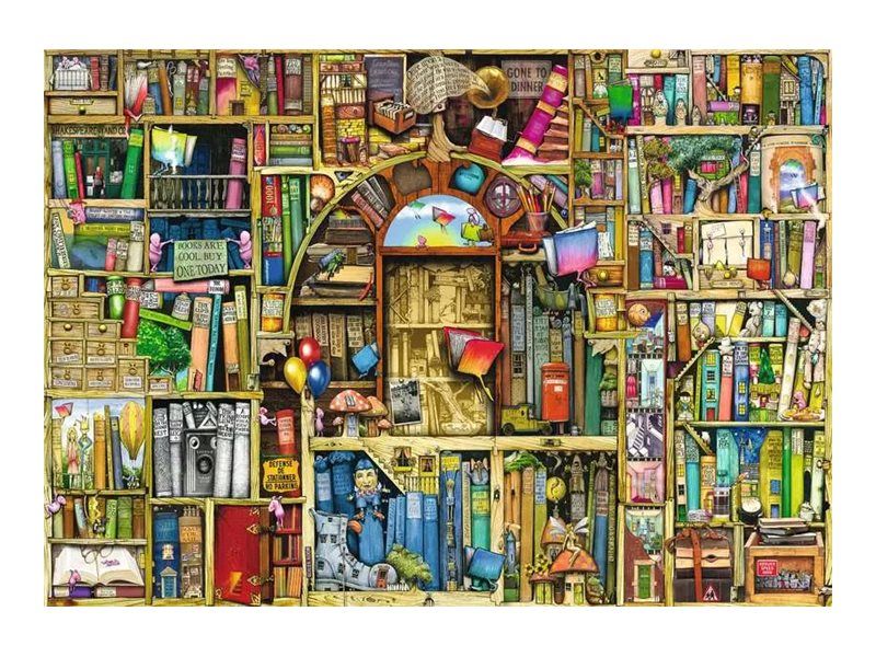 Oppdag moroa med finurlige boktitler, nysgjerrige skapninger og magiske øyeblikk som kunstneren Colin Thompson har lagt inn i puslespillet "Bizarre Bookshop 2"!