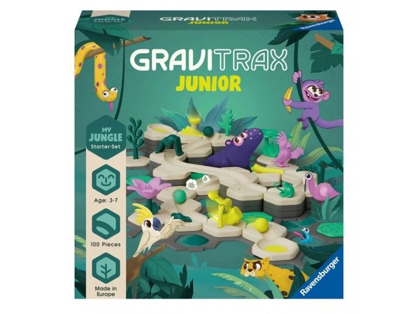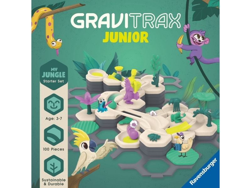 GraviTrax Junior er et interaktivt kulebanesystem for barn fra 3 år og oppover. Gutter og jenter skaper sine egne kulebaneverdener, som kan dekoreres fleksibelt for å skape individuelle temaverdener. Bygging og lek kombineres.