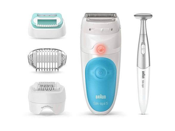BRAUN Silk-épil 5-810 med begynder-tilbehøret egner sig ideelt til ideal for en blid hårfjerning. Micro-Grip-teknologien med 28 pincetter fjerner selv de korteste hår (0,5 mm) - silkeblød og glat hud i uger, ikke kun dage. Med Rasier- og trimmerhovedet kan følsomme områder behandles. Epilatoren til kvinder er 100 % vandtæt og kan uden problemer bruges i badet eller i badet, hvilket was smerteføleren reduceres betydeligt. Skab perfekte bikinilier med bikinitrimmeren – præcis trimning helt enkelt.