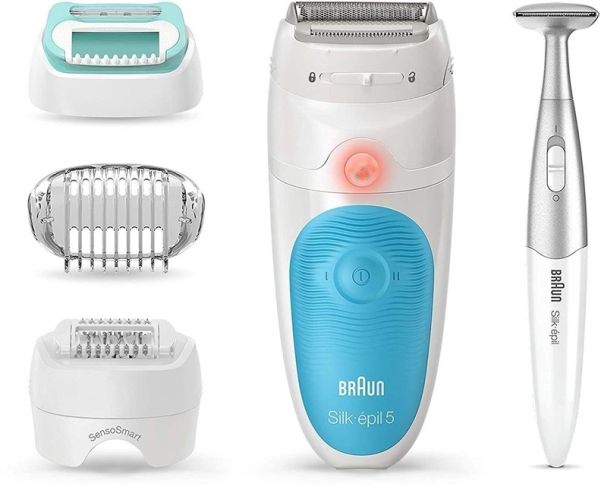 BRAUN Silk-epil 5-810 SensoSmart™ Blødt: Epilator til kvinder, ideal for Epilations-stigningskvindelige, med ekstra barberingstilbehør til følsomme områder og begynder-tilbehør for en blid hårfjerning Grundig: Micro-Grip-pincet teknologien (28 pincetter) fjerner hår på størrelse med et sandkorn Glat hud: Barbering, trimning og epilering til glat hud, der har lang levetid Mindre smertefuld: Højfrekvens-massagestykke med pulserende vibrationer til reduktion af smertefølelsen Effektivt: Tilpasser sig kroppens konturer takket være vippelig påsætningen - for en grundig epilering selv i vanskeligt tilgængelige områder som knælen og armene