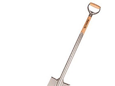 galax entreprenørspade med lakeret asketræsskaft og kraftigt jern D-greb.