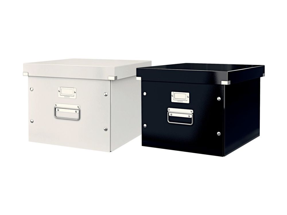 Leitz Click & Store - the practical storage and organization solutions offering durability and style. These archiving boxes are perfect for storage around the home and in the office. Store anything from photos, documents, CDs, DVDs, suspension files and much more. The boxes work with a pop stud mechanism and come flat packed so take up less space when not in use. With a laminated surface this will provide better long-lasting protection. Sturdy handles help you transport your box easily, and you can label them up for easy identification. A contempory design that will look great in any home or office.