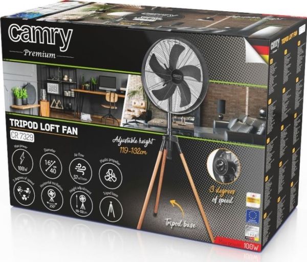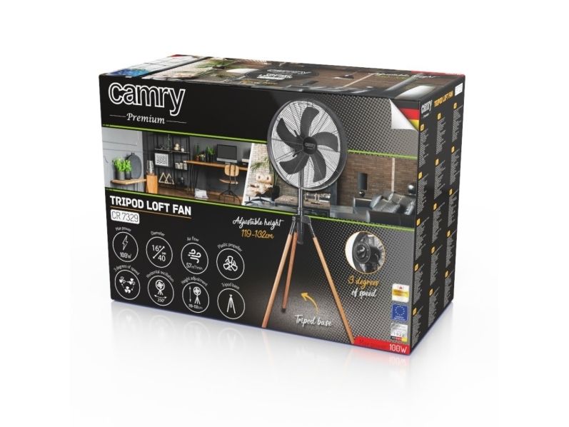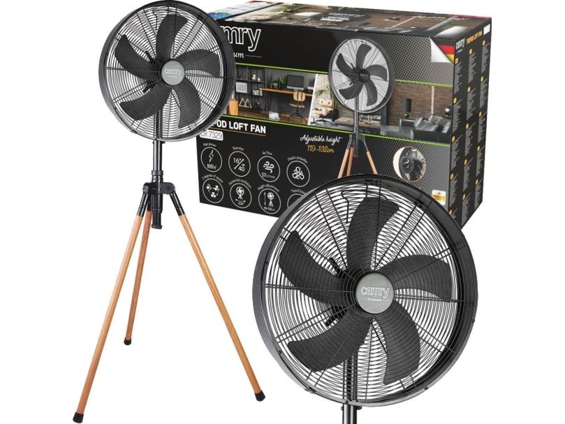 When looking for equipment to help cool the air inside an apartment or house, we often turn to original-looking devices. In addition to traditional white or black air conditioners, fans like the tripod loft fan CAMRY CR 7329 are becoming popular and are suitable for modern loft-style interiors. Their design and high-quality execution make them a valued element of the arrangement of large spaces.