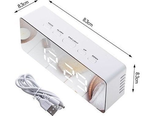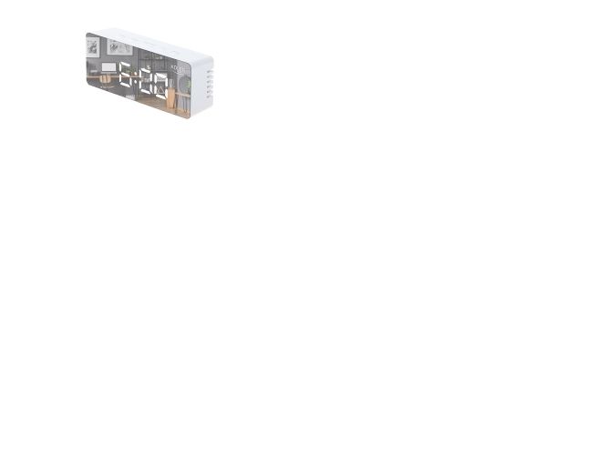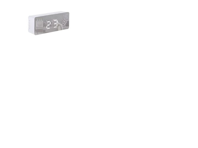 Alarm, Date display, Alarm clock display. Room temperature display. 3 alarm clock activation modes: Monday to Friday / Monday to Saturday / Monday to Sunday 2 display backlight modes : strong and light Editable snooze time. from 1 - 60 minutes