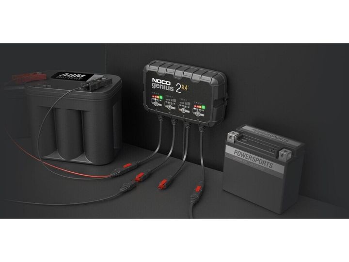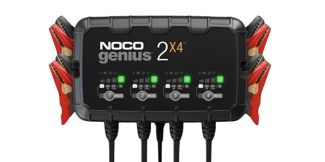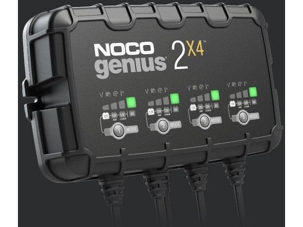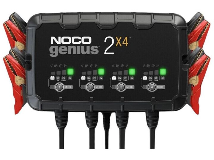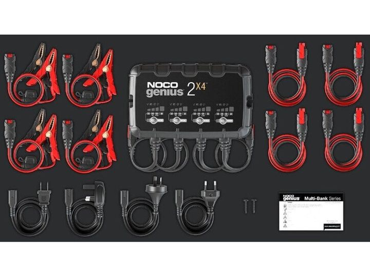 2X4 er en 6-volts og 12-volts to-bank batterioplader samt vedligeholdelsesoplader til dine batterier.