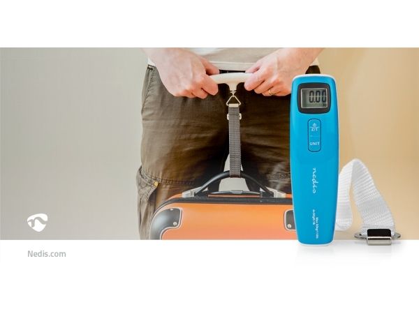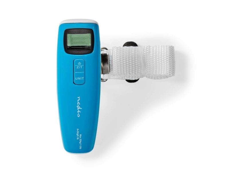 Med en enkelt knap kan du tænde vægten og ændre måleenheden. Bagagevægten måler i kg og lbs (pund) med et maksimalt læs på 50 kg/110 lbs. Der vises en advarsel, hvis vægten overskrider maksimallæsset.