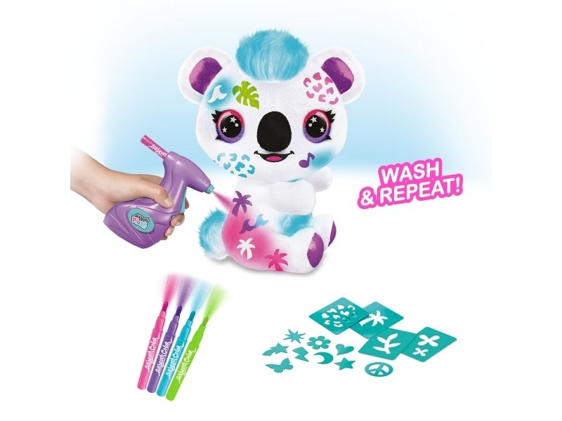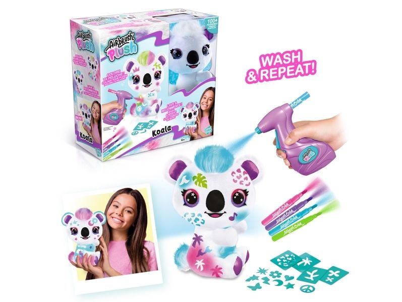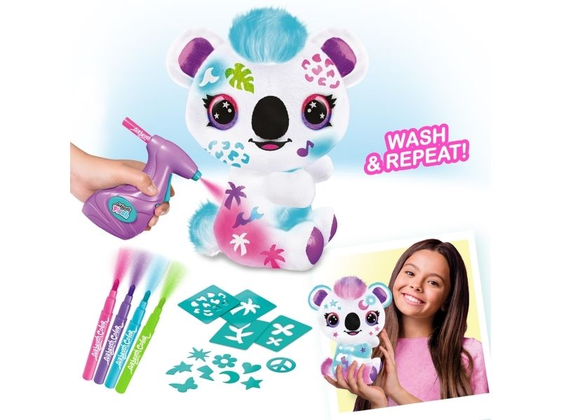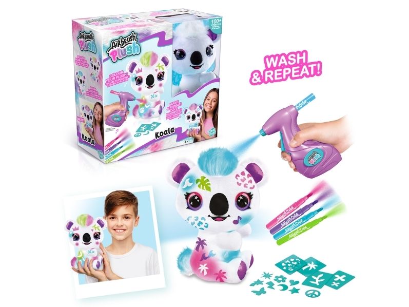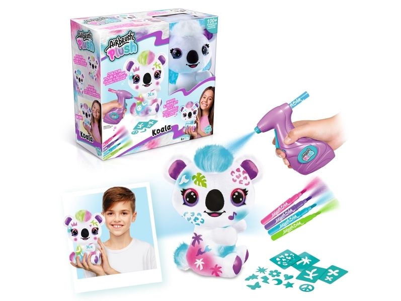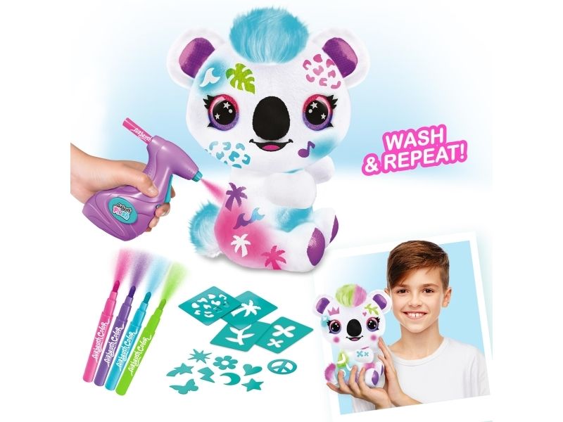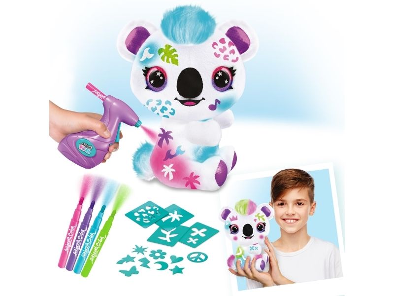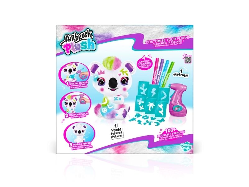 Sett farge på plysjen din! Bruk airbrushen for å gi plysjen din et helt unikt design. Du kan bruke sjablongene for å få ikoner i vakre farger på plysjen, eller du kan velge å være kreativ og gå freestyle. Alt du trenger å gjøre er å feste sjablongene på kosedyret, velge farge og spraye med airbrushen – og når du er klar for et nytt design er det bare å vaske kosedyret og begynne på nytt med ny pynt. Fra 6 år.