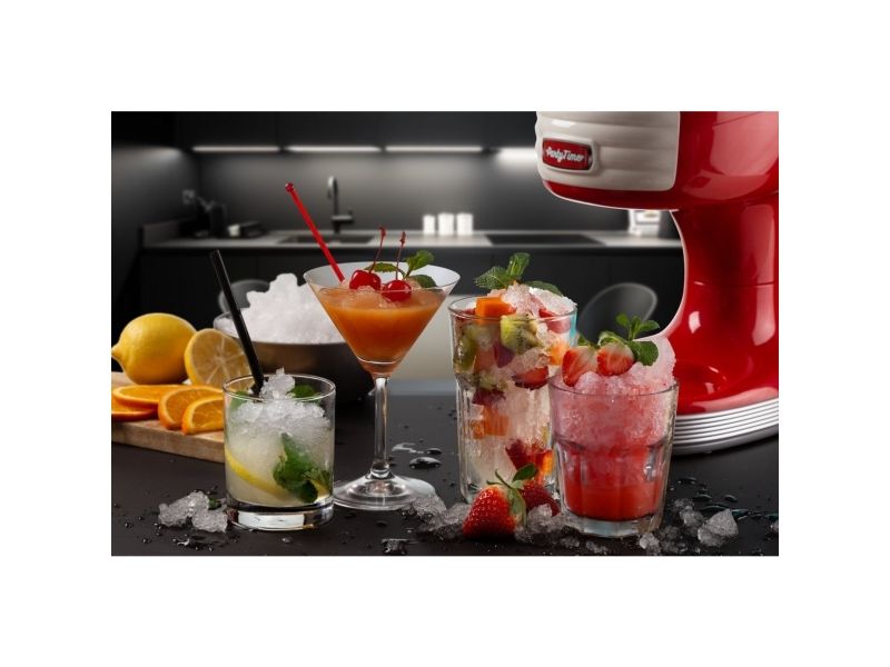 Ice Crusher Party Time is the incredible ice crusher from the Party Time line which, with its exclusive design, gives your kitchen a touch of joy.Thanks to its 30W of power you get crushed ice in a few moments: insert the cubed ice in the upper part, place the glass on the base inside the engraved screen printing, close the lid equipped with a safety device and Ice Crusher will activate automatically.The ice will be perfectly chopped thanks to the stainless steel blades.Once finished, Ice Crusher can be easily disassembled, including the ice crusher basket, for quick cleaning and will be immediately ready to crush more ice.Crushed ice with Ice Crusher is perfect for preparing cocktails and fresh slushes to garnish as you like.Ariete 76 Ice Crusher Party Time, Ice Crusher Machine, 30 W, Removable Ice Crusher Basket, Stainless Steel Blades, Red. Product colour: Red. Width: 170 mm, Depth: 245 mm, Height: 315 mm. Power: 30 W. Warranty period: 2 year(s). Package weight: 2.01 kg