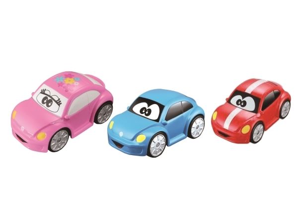 Søte frihjulsbiler, som er perfekte som et barns første Volkswagen. Øver barnets finmotorikk. Fås i rosa og blå. Fra 12 måneder.