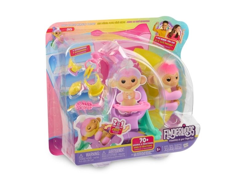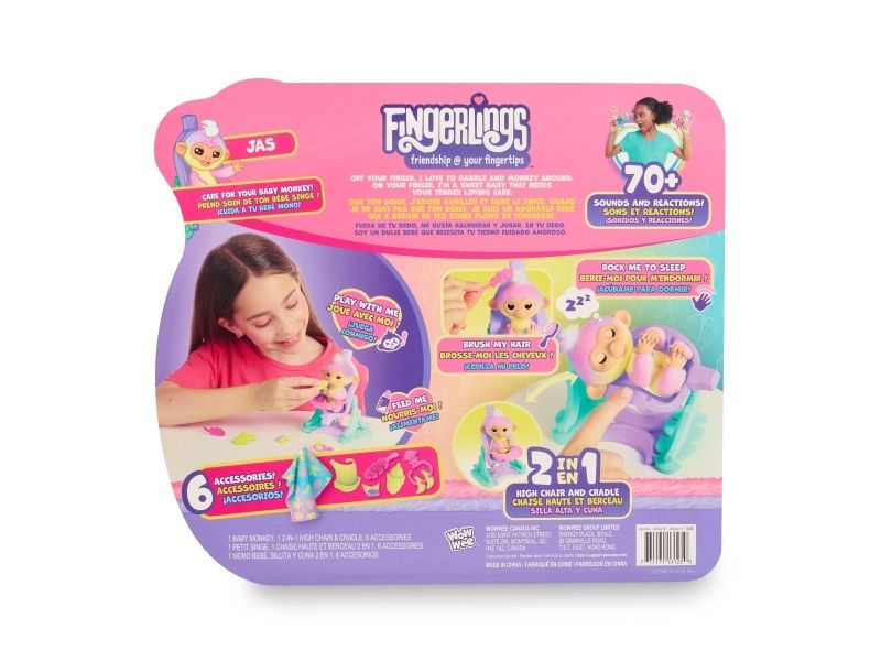 Apen har mer enn 70 lyder og reaksjoner med en unik personlighet. Den lager søte babylyder, babler på en sjarmerende måte og elsker kyss. Når du tar den på hodet, spiller den peek-a-boo med deg. Du kan også prøve å holde den i halen med hodet ned, og den vil svare med et "viiiii". Den elsker å spise og ber alltid om mer mat. Babytilbehør og barnestol, som også fungerer som hengekøye, er inkludert. Fra 5 år.