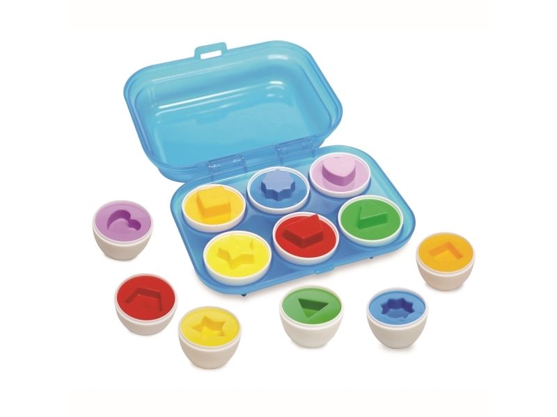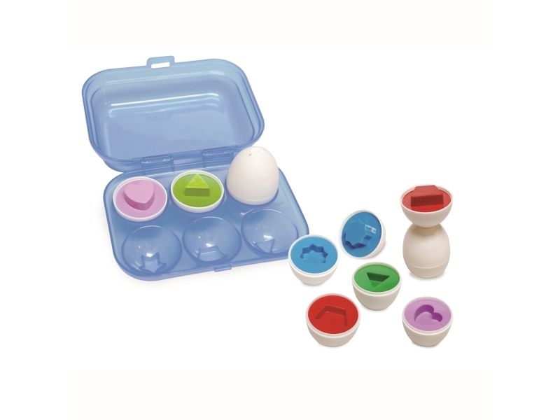 De 6 pusleeggene hjelper barna å lære å telle, sortere og matche. Innvendig har hver av de 6 eggene sin egen farge og form. Å åpne eggene og sette to halv egg sammen lærer barna om former og farger, og utvikler deres fine motoriske ferdigheter.