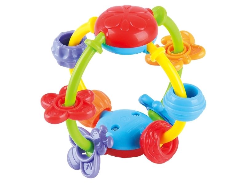 Fargerik rangleball som stimulerer både følesansen, hørselen og synet. Gjennom lek fremmes barnets gripeteknikk og evnen til å holde med begge hender. Passer for barn fra 6 måneder.