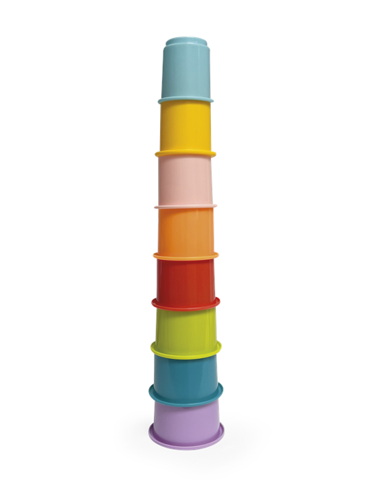 8 stk. stablekopper i regnbuens farger, som er med på å oppbygge ditt barns motoriske evner. Koppene kan stables helt opp til 50,5 cm. Fra 12 måneder.
