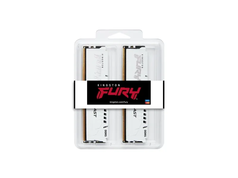Kingston FURY Beast - DDR5 - sett - 64 GB: 4 x 16 GB - DIMM 288-pin - 5600 MT/s / PC5-44800 - CL40 - 1.25 V - ikke-bufret - on-die ECC - hvit