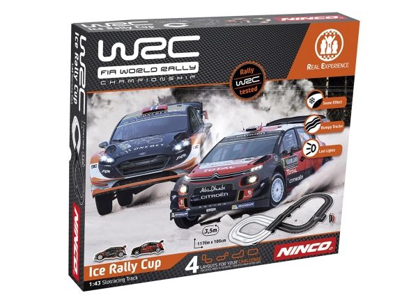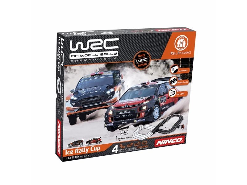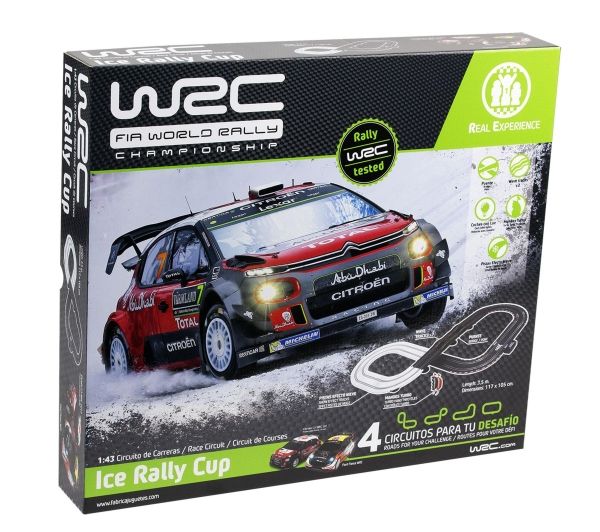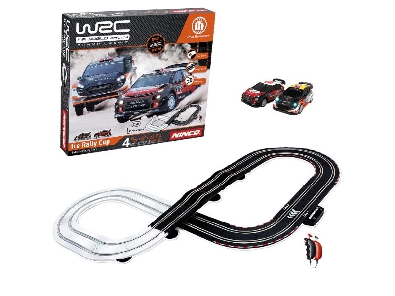 WRC Circuit Ice Rally Cup i mindre skala for små barn. De mindre banene og bilene gjør det både enklere å kjøre på, og å installere banen hjemme. Det perfekte springbrettet for de yngste førerne som begynner å glede seg over WRC-racing. Fjernkontrollene er tilpasset barnas ergonomi og kommer med en turbofunksjon som lar deg kontrollere hastigheten. En meget attraktiv racerbane som gir en morsom og inspirerende opplevelse: rette spordeler, snøeffekt-spordeler, bro, spordeler med svinger. Det er mulig å lage 4 forskjellige bane konfigurasjoner. Fra 4 år.