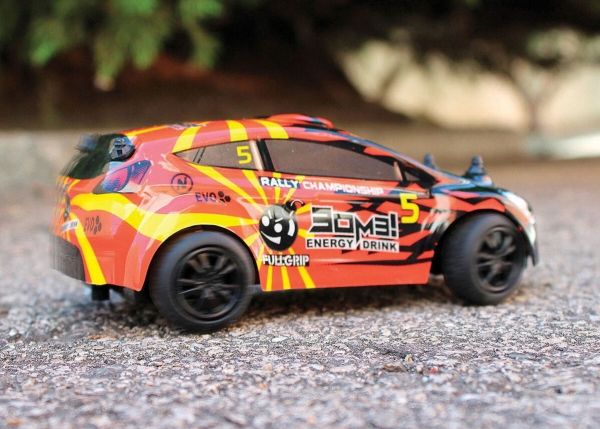 Med denne 1:30 X-Rally Bomb racerbilen kan du spille på steder hvor det er lite plass. Bilen har gummihjul. Fra 6 år.
