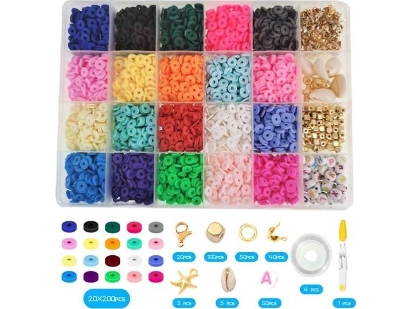 - 4000 flate, runde leirperler i 20 forskjellige farger