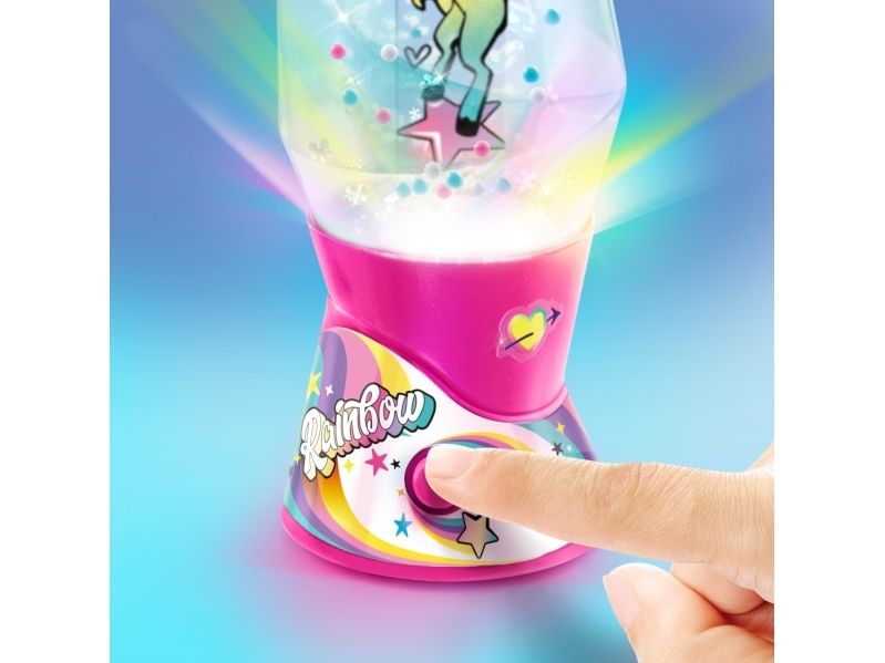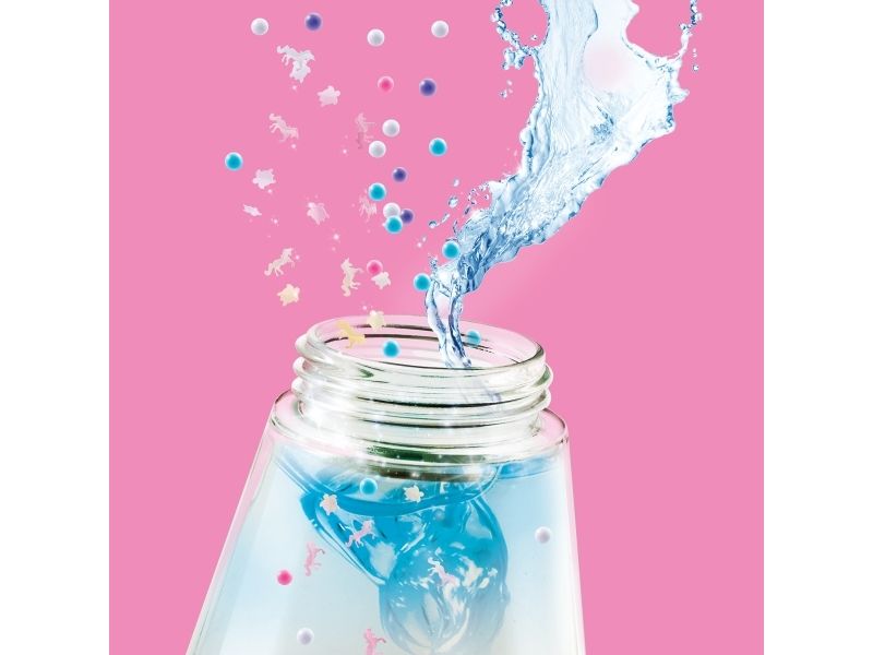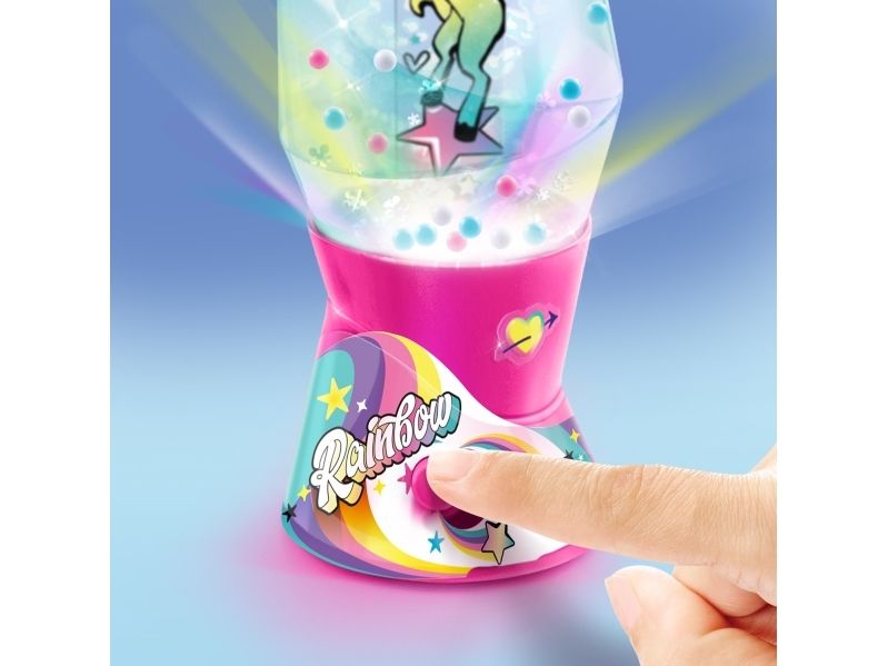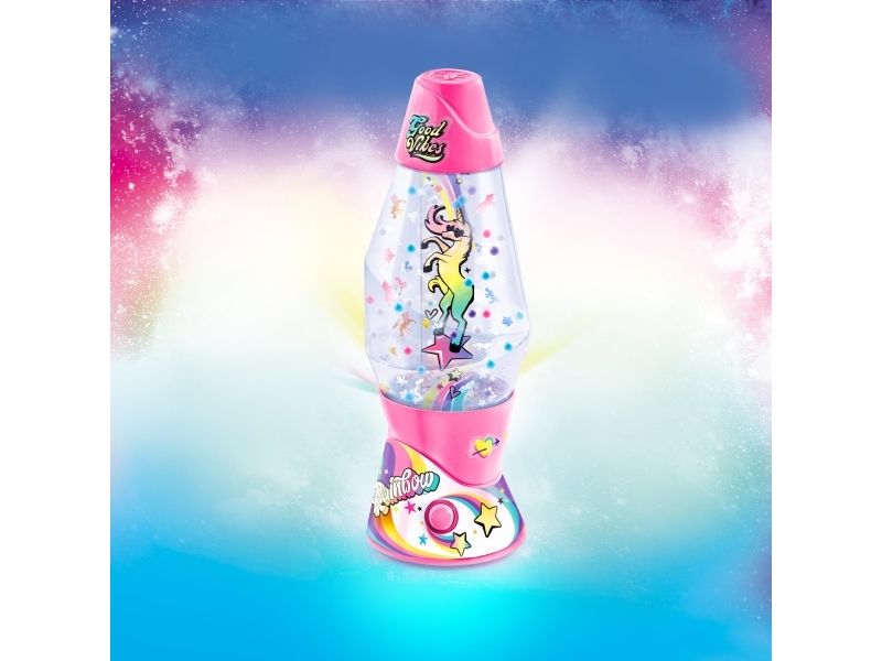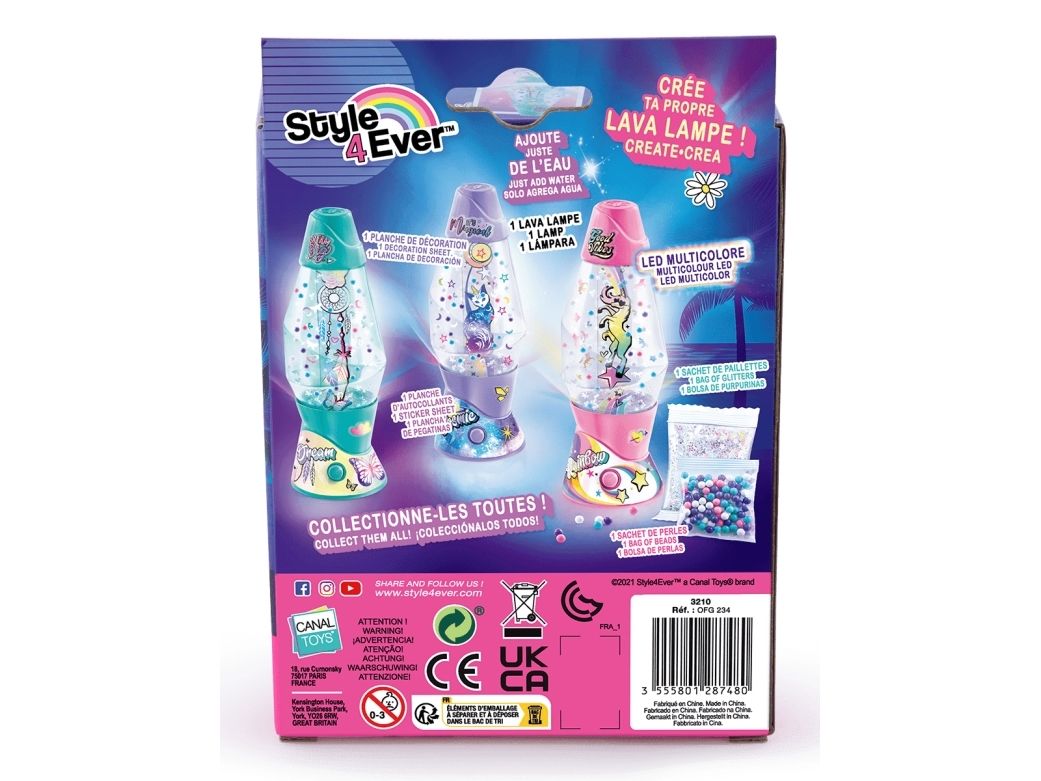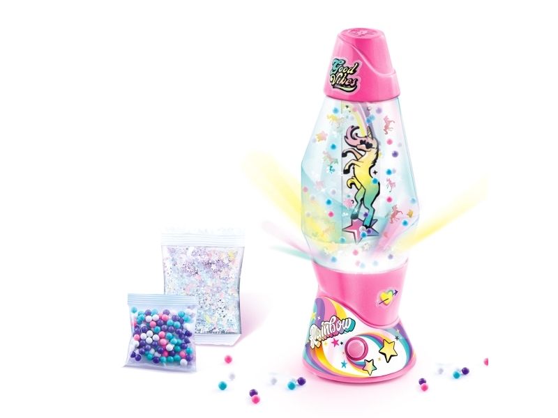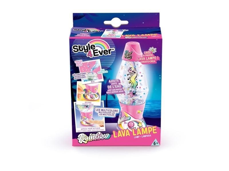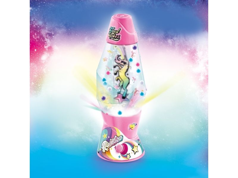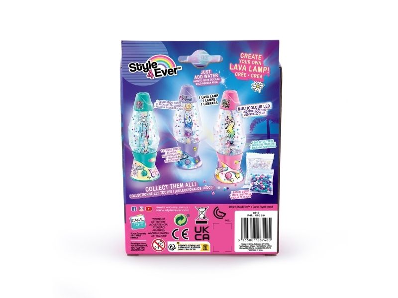 Lag din egen lavalampe! Med den medfølgende dekorasjonen, klistremerkene og perlene kan du faktisk designe lampen din slik du vil. Bare bland, dekorer og trykk for å få det flerfarget LED-lyset til å fungere. Lampen måler 15,5 cm i høyden og er tilgjengelig i 3 temaer, Dream, Rainbow og Cosmic. Fra 6 år.