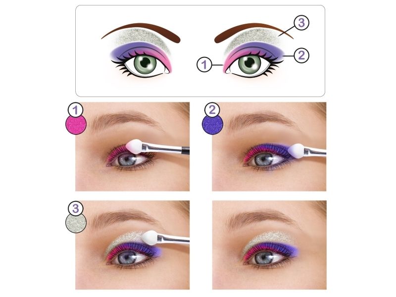 - 12 øyenskygger (3 med glitter)