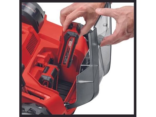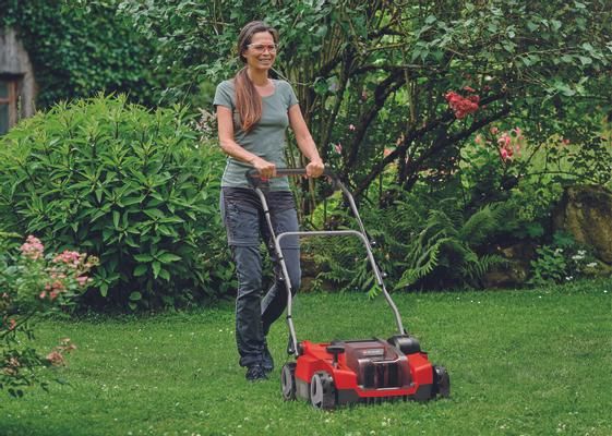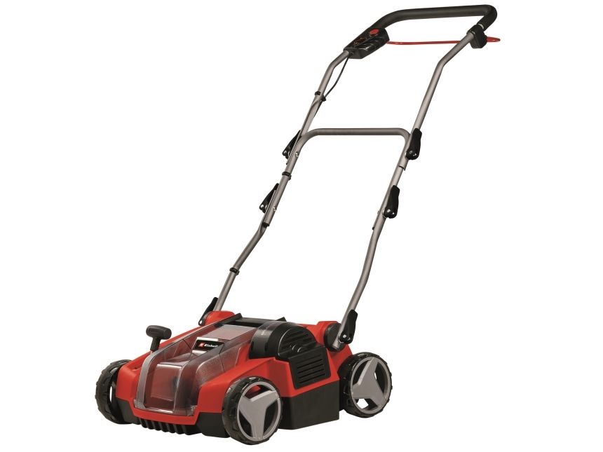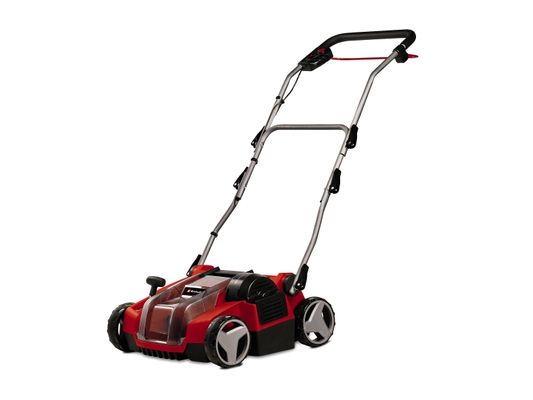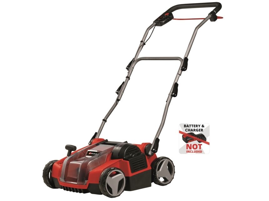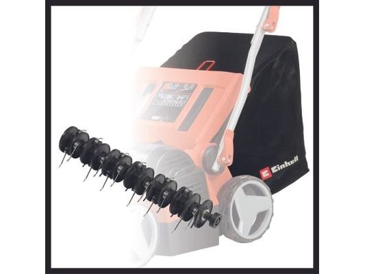 Batteri-vertikalskærer-ventilator GE-SC 36/35 Li - Solo Medlem af Power X-Change familien - der skal anvendes et 1 x 18V-batteri TWIN-PACK-teknologi: 2x18V Power X Power-Change batterier - mere power. Power Børsteløs motor - mere power og længere levetid Kuglelejret knivvalse med 16 knive i rustfrit stål Batteri-vertikalskærer-ventilatoren GE-SC 36/35 Li - Solo sørger for trådløs grøn i haven derhjemme. Takket være Power X-Change drevet er der trådløs frihed, og haven får succes i alle kroge. Twin-PACK-teknologien udnytter kraften fra to 18 V PXC-batterier. Enheden er drevet af en Einhell PurePower Brushless-motor. Denne børsteløse motor giver større kraft og en længere levetid end almindelige kulbørstemotorer. Den kuglelejrede knivvalse er udstyret med 16 knive i rustfrit stål, kunststofkabinettet af slagfast materiale er vedligeholdelsesfri. Arbejdsdybdeindstilling sker i 3 trin plus en transportposition. Den sammenklappelige føringsskinne er udstyret med en hurtigspændearm, samt en højdejusterbar parkeringsposition. Et bærehåndtag er integreret. Udskiftning af tromletop sker uden værktøj. De store hjul skåner græsplænen. Vertikalskærer kan udvides til 3-i-1-kombi-enhed (ventilationsvalse/opsamlingskurv).