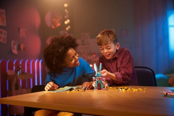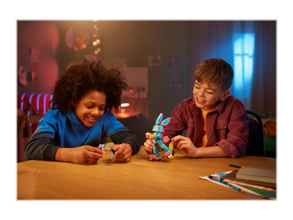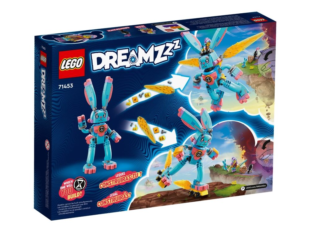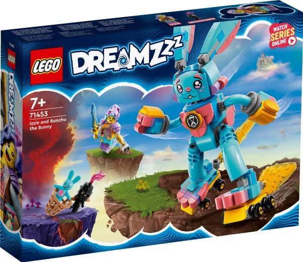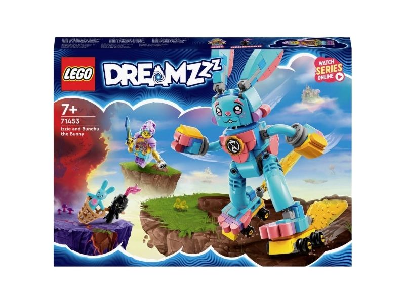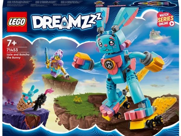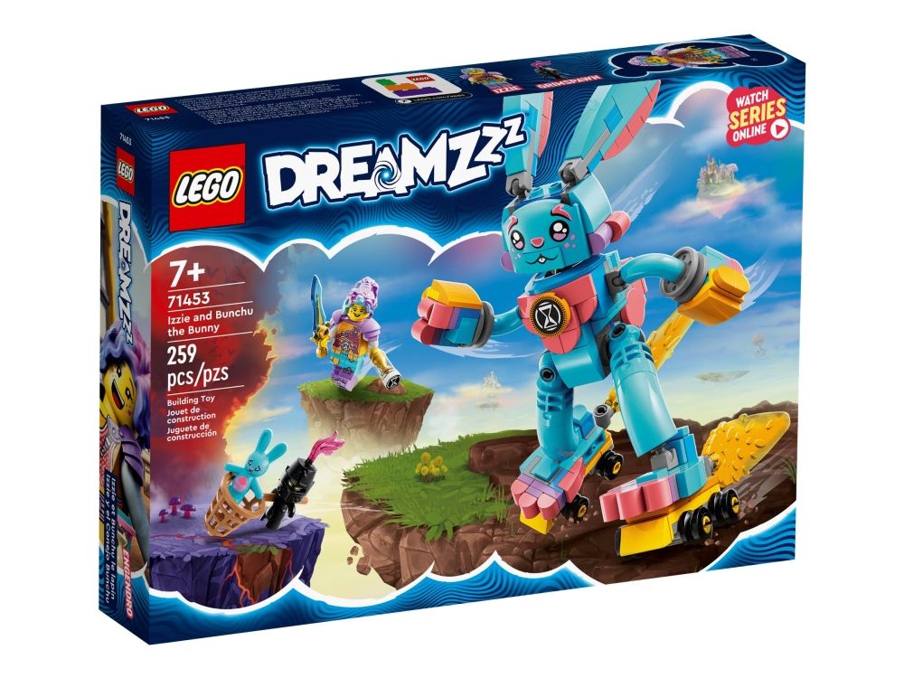 Med byggelekesettet LEGO® DREAMZzz™ Izzie og kaninen Bunchu (71453) kan barn fra sju år bli med inn i en actionfylt drømmeverden. Settet er basert på den spennende TV-serien. En mareritt-Grimspawn har kidnappet kosedyret til seriens hovedfigur, Izzie, og nå kan barn hjelpe Izzie å redde kosedyret ved å drømme fram en større versjon av det.
